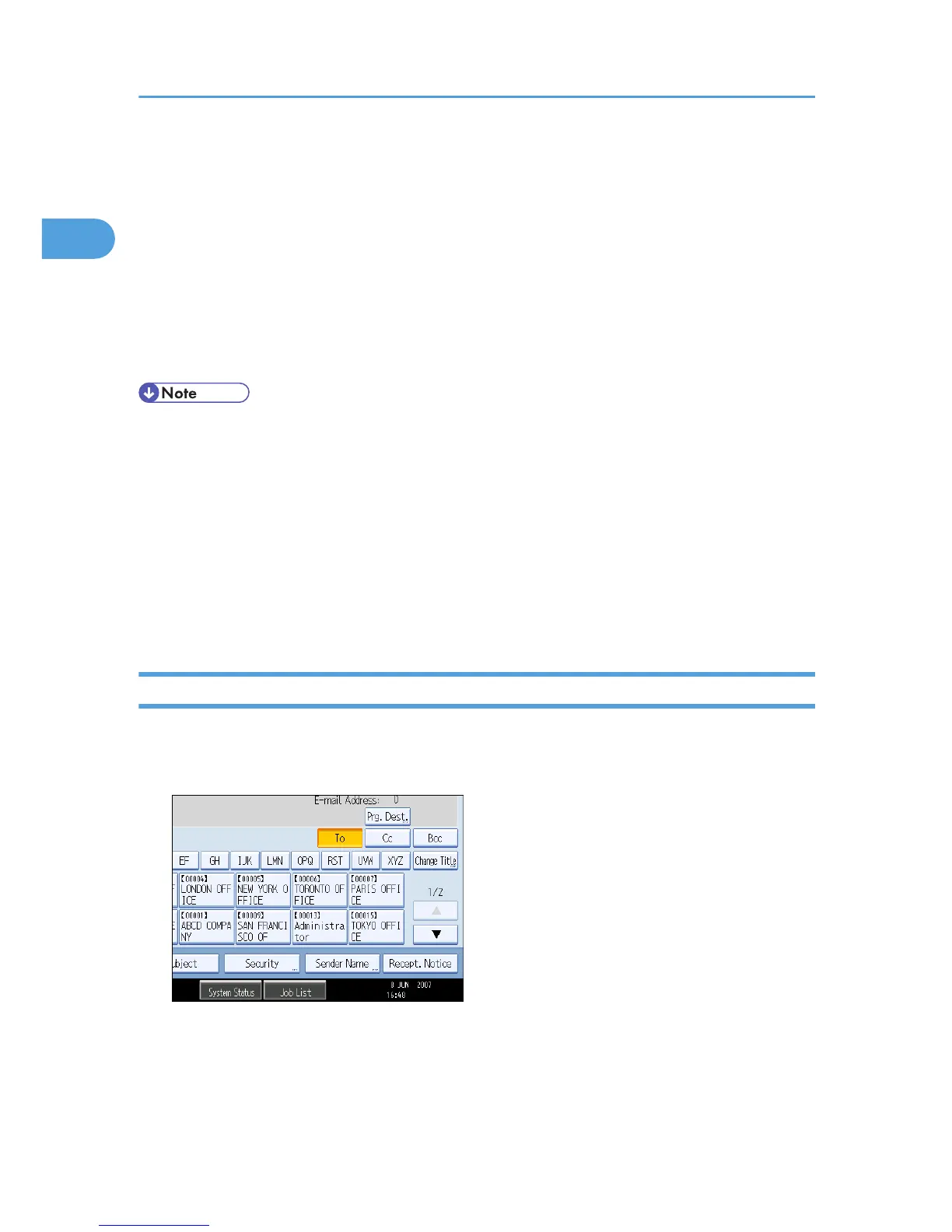 • Senders must be registered in advance under [System Settings]. For details, see "Registering Addresses