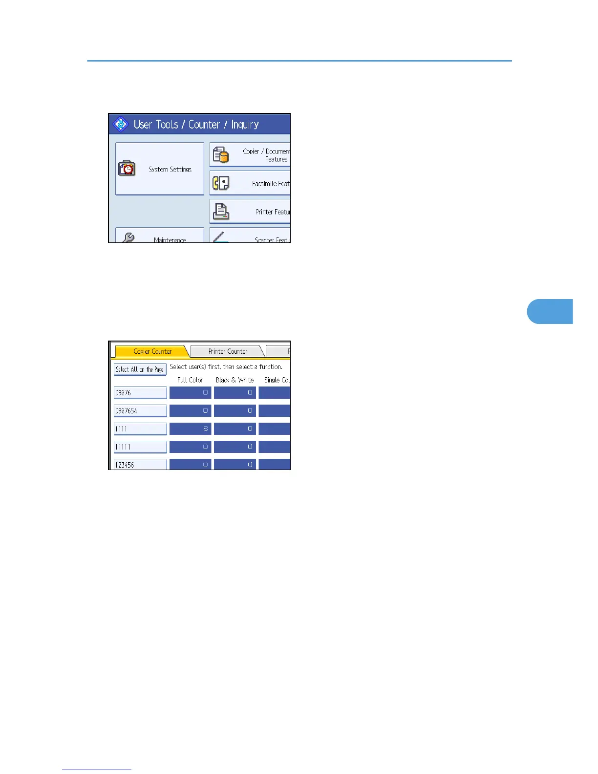 11. Select the function usage you want to clear from [Copier Counter], [Printer Counter], [Fax