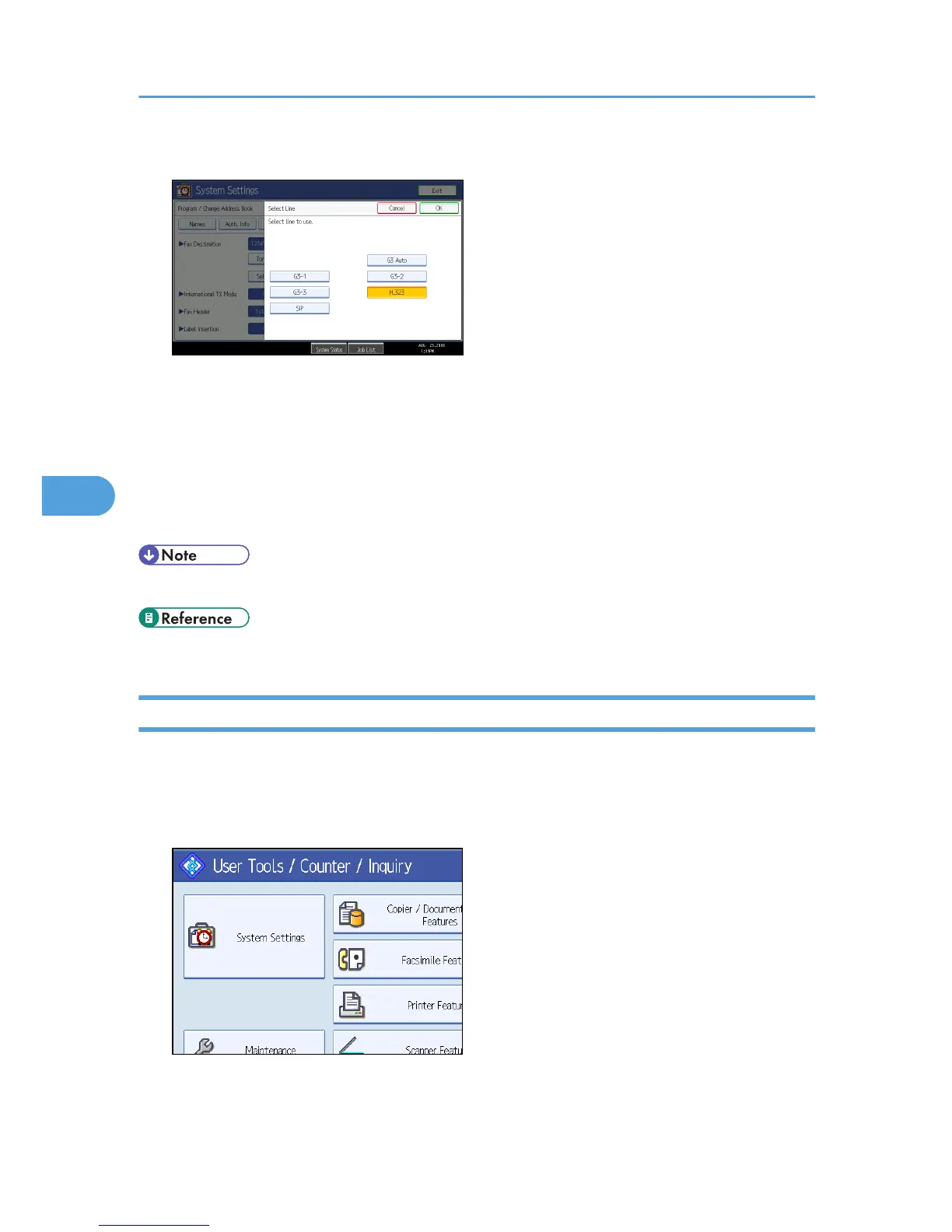 8. Press [Select Line], and then select [H.323] or [SIP].