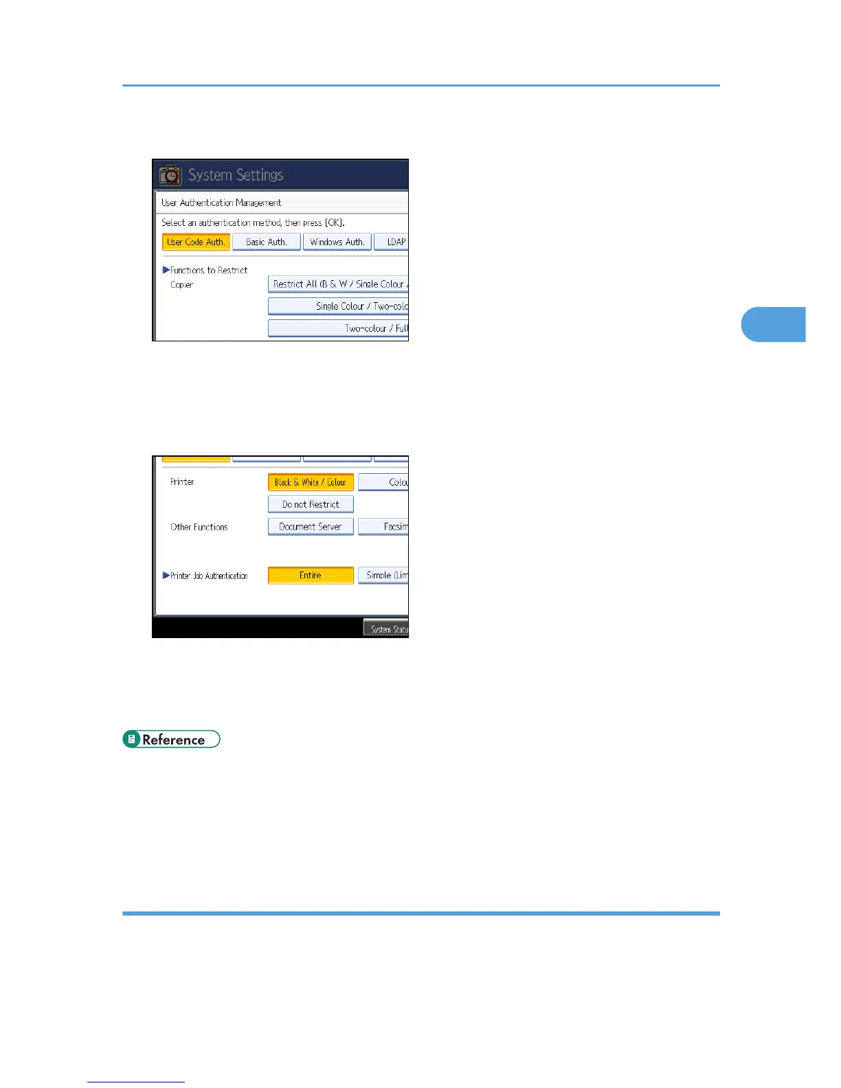 For a description of the printer job authentication levels, see "Printer Job Authentication".