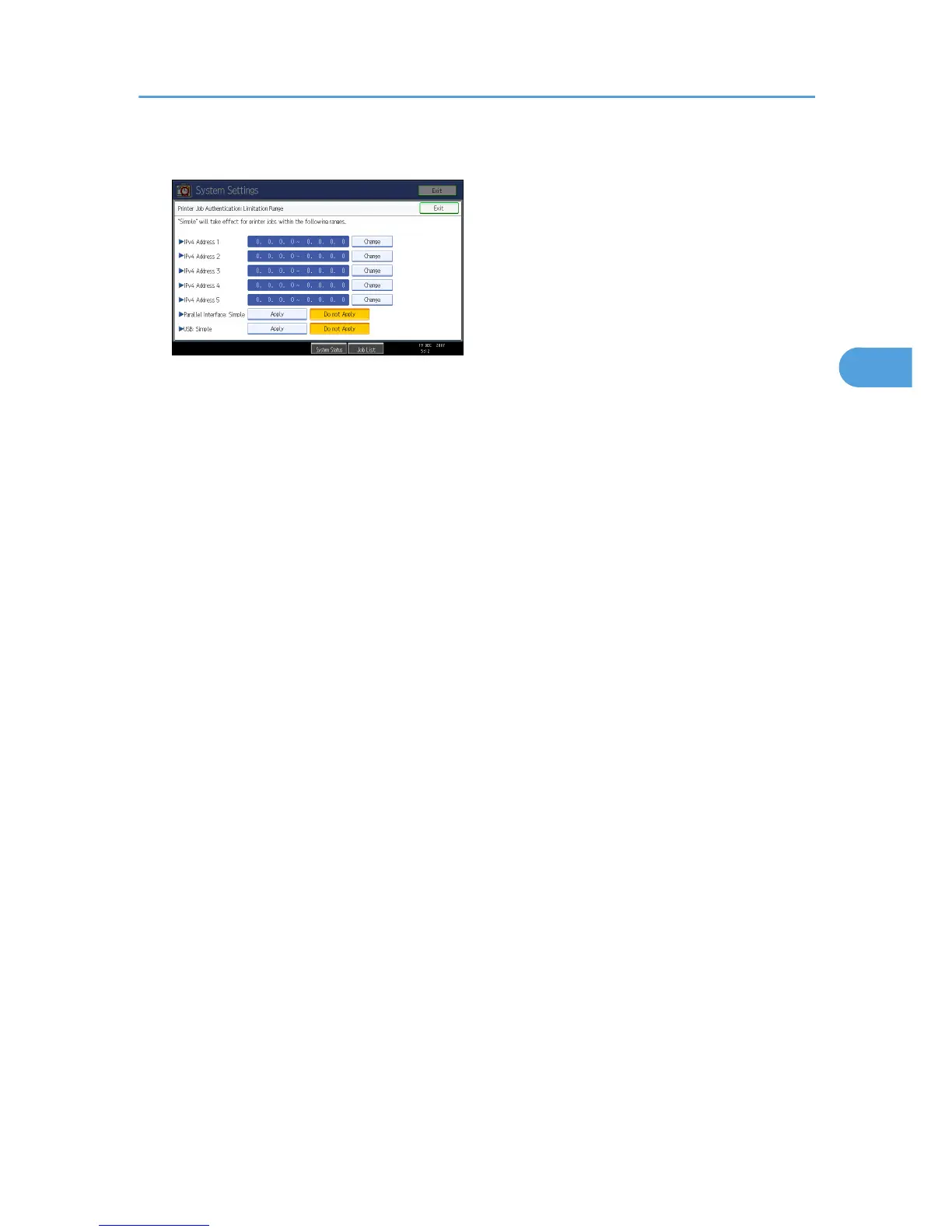 3. Specify the range in which [Simple (Limitation)] is applied to "Printer Job Authentication".
