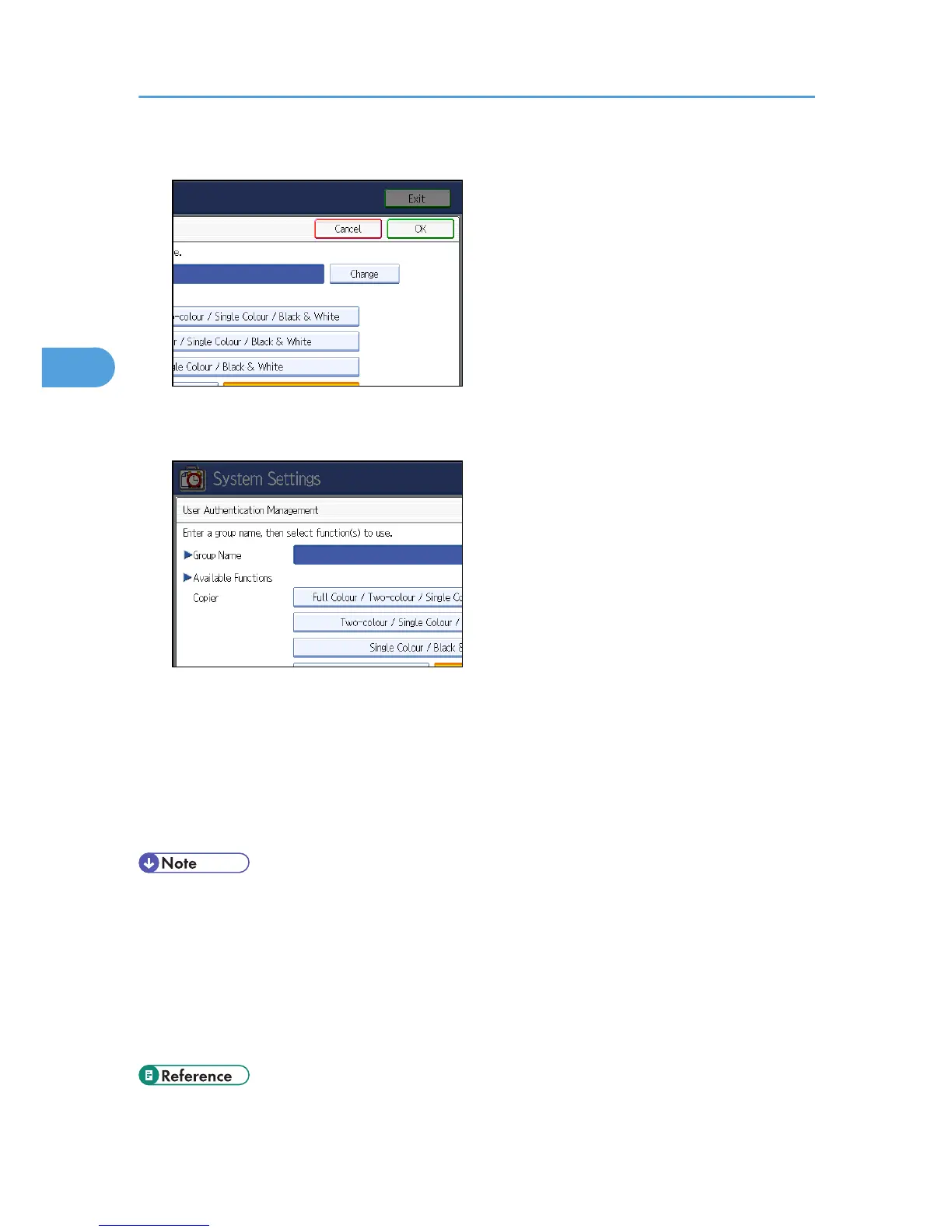 For details about specifying available functions for individuals or groups, see "Limiting Available