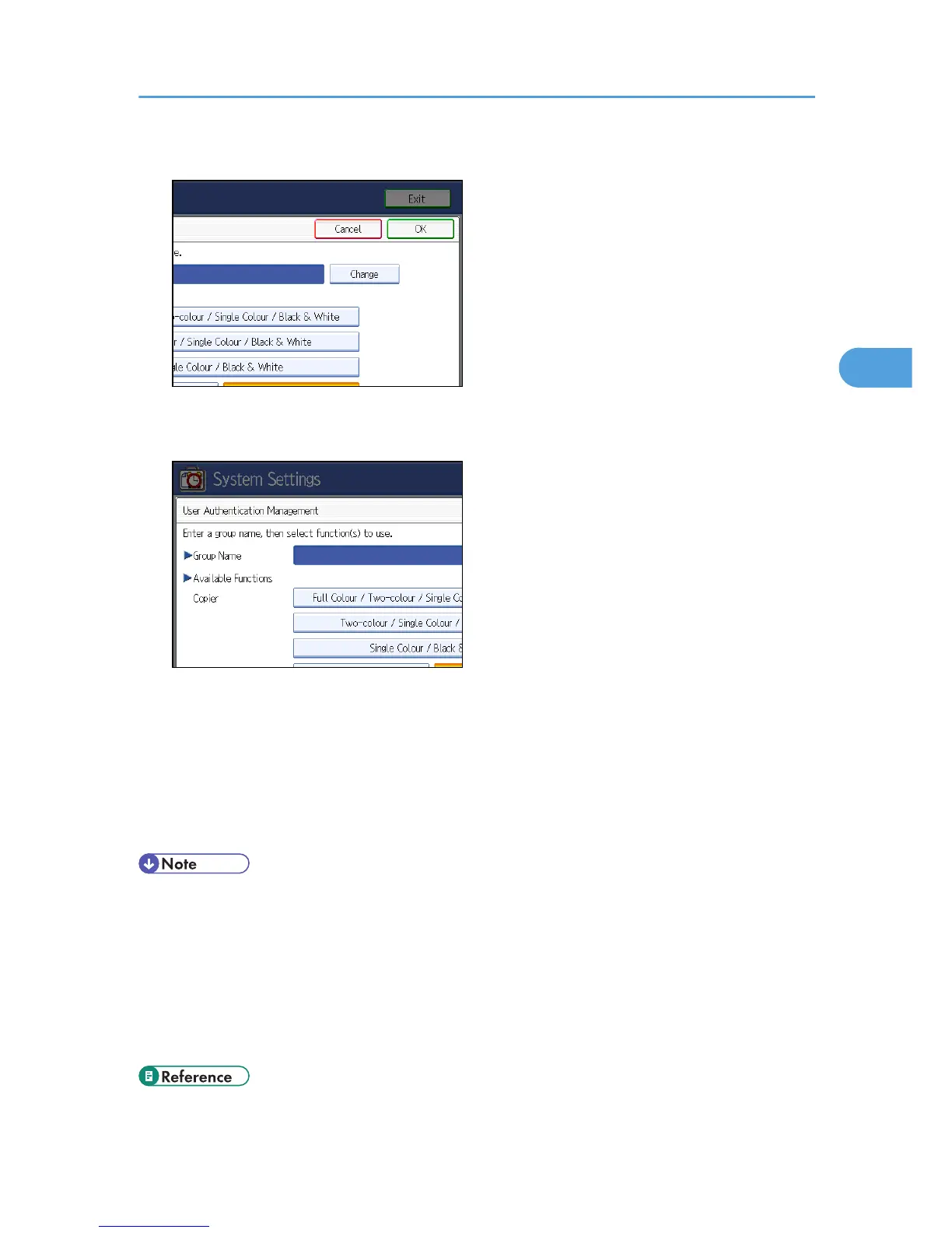 For details about specifying available functions for individuals or groups, see "Limiting Available