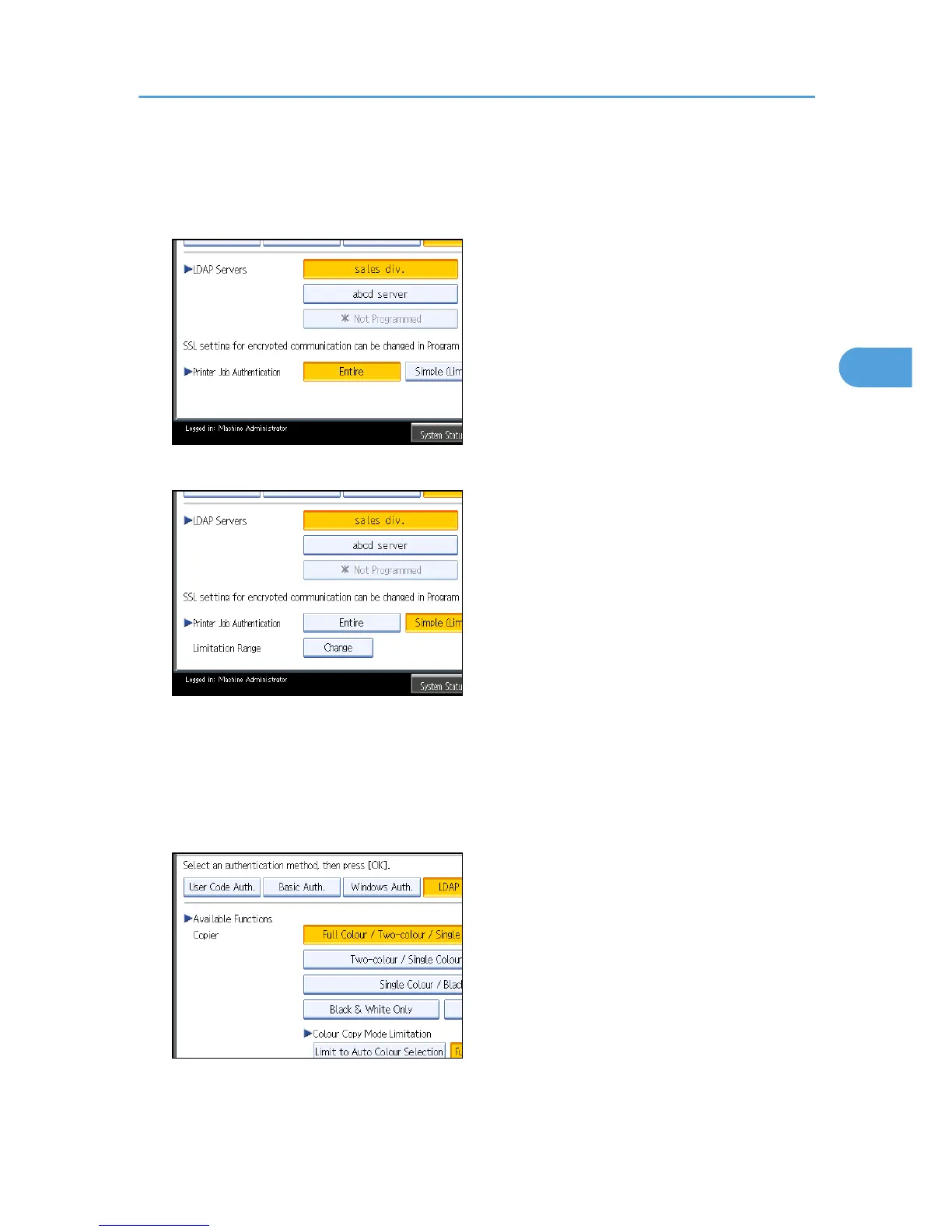 3. Specify the range in which [Simple (Limitation)] is applied to "Printer Job Authentication".