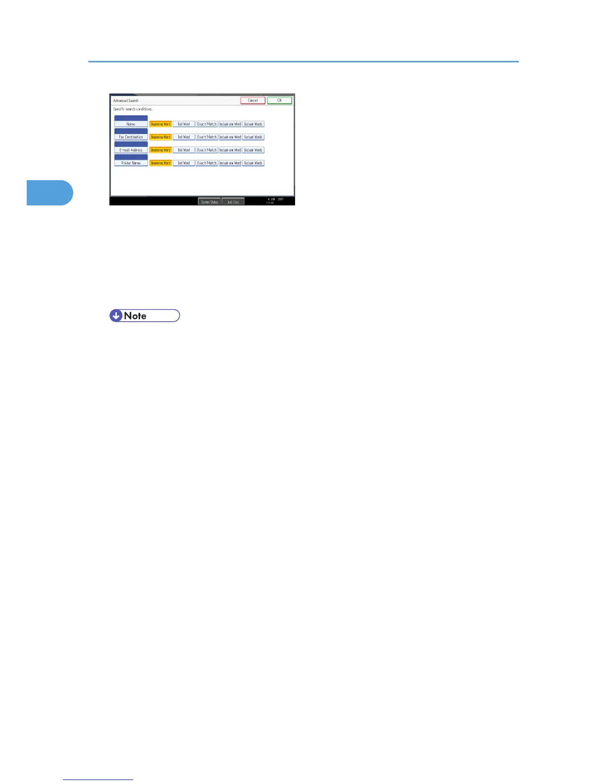 • Search criteria that appear in [Advanced Search], such as [Name], [E-mail Address], and