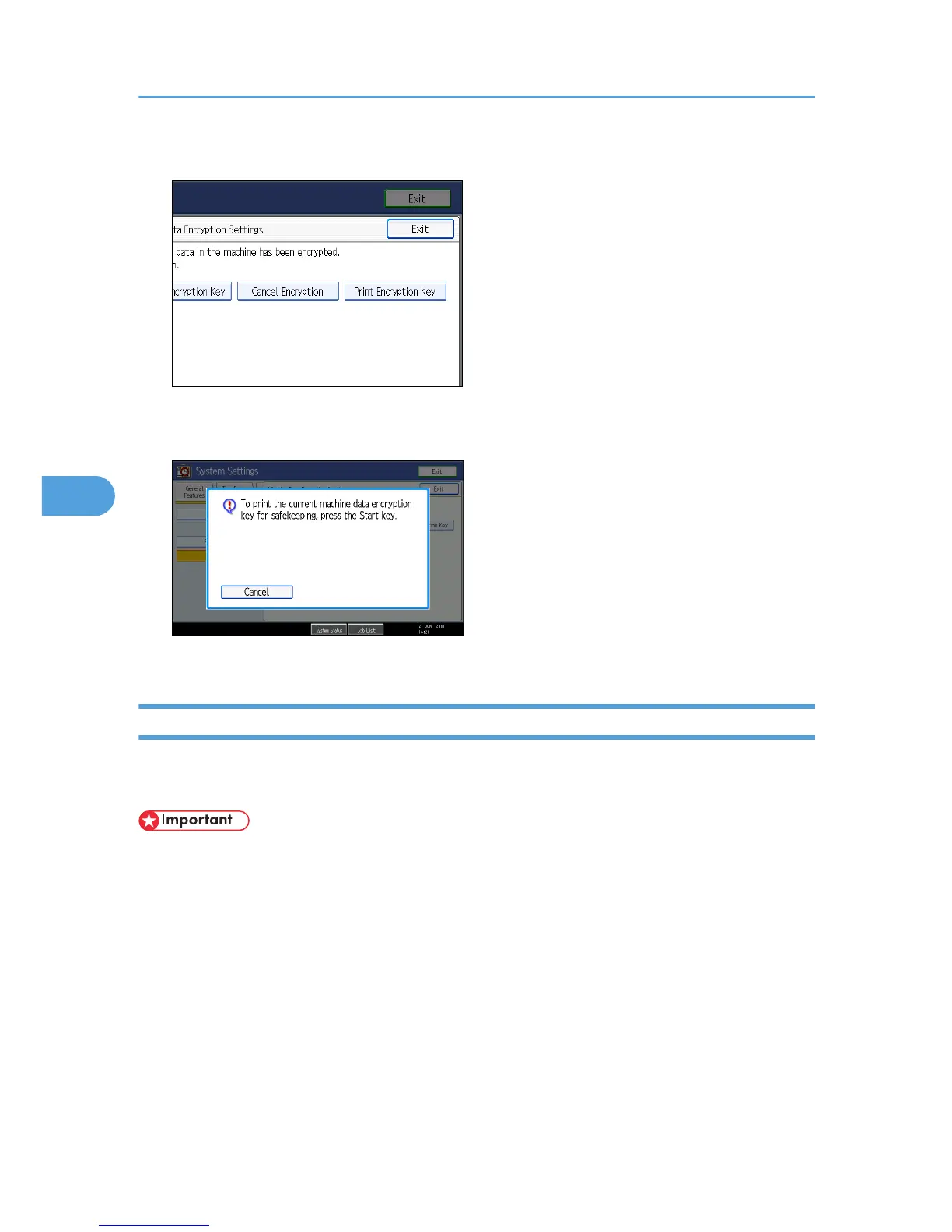 • The encryption key is required for recovery if the machine malfunctions. Be sure to store the encryption