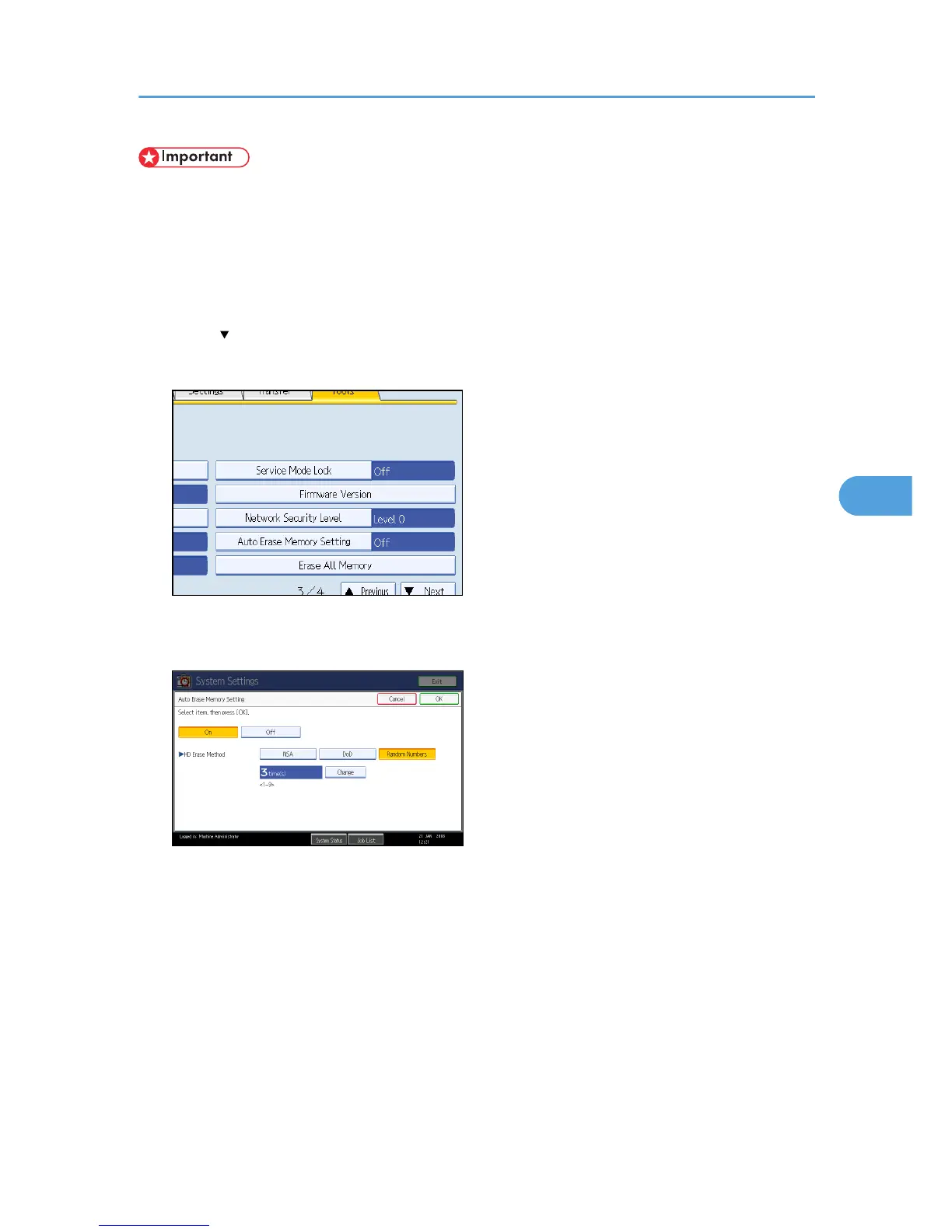 4. Press [ Next] repeatedly until [Auto Erase Memory Setting] appears.