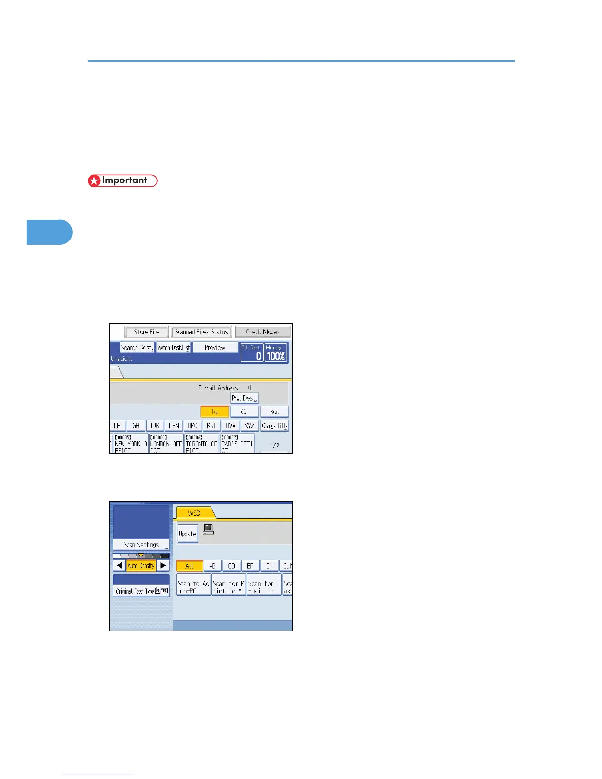 2. If the E-mail screen, Scan to Folder screen, or network delivery scanner screen is displayed,
