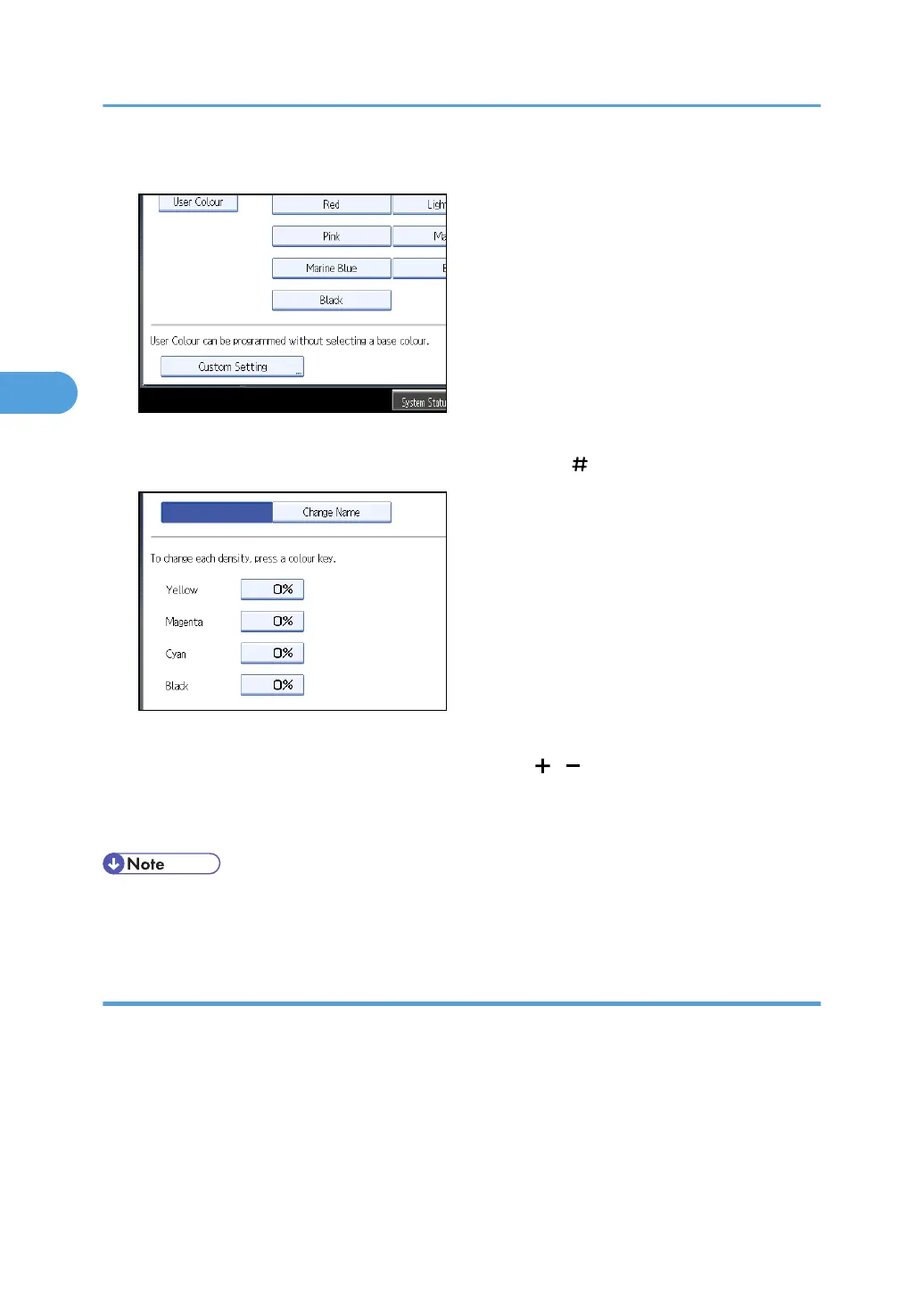 • Selecting a user colour key that is indicated by a solid line will change (overwrite) the contents of that
