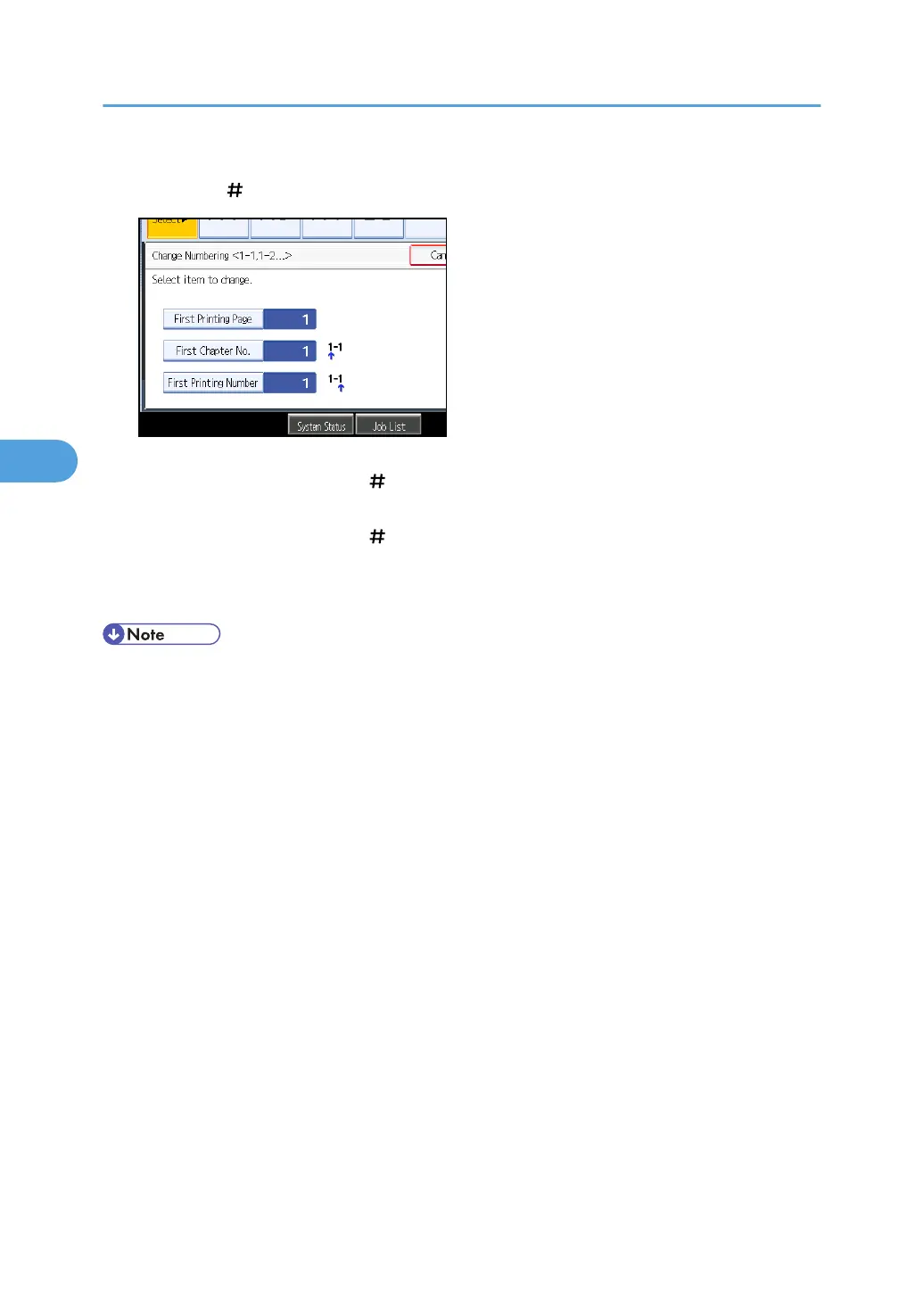 • You can set a value from 1 to 9999 for [First Printing Page], [First Printing Number], and [First Chapter