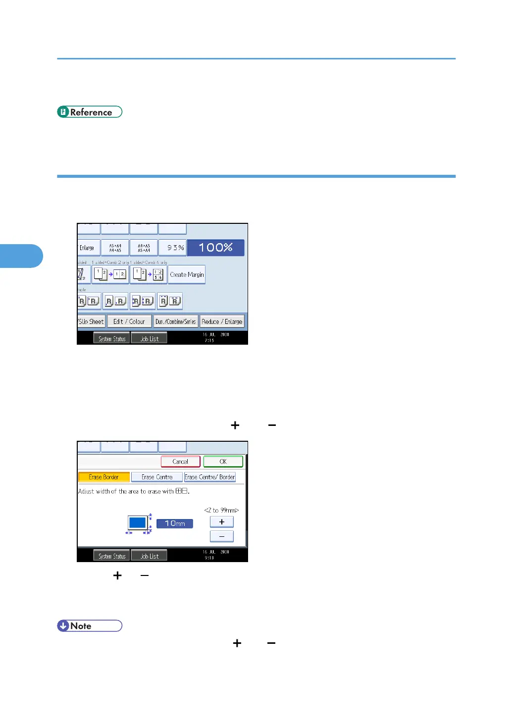 Pressing [ ] or [ ] changes the width in increments of 1 mm (0.1 inch). Pressing and holding down