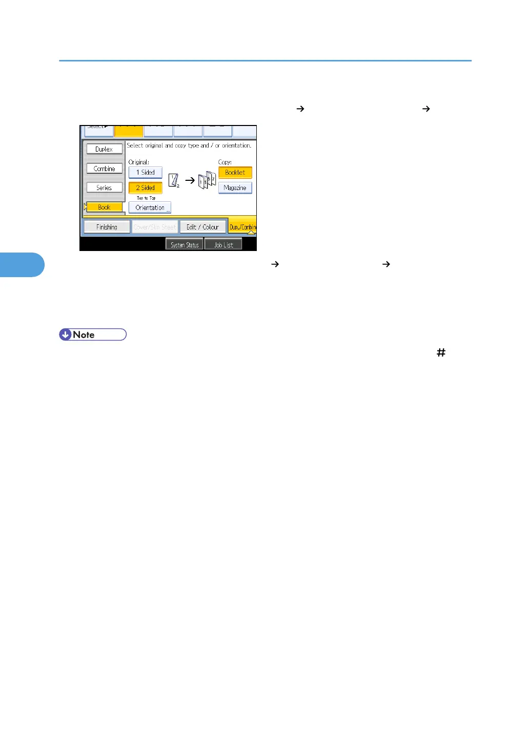 3. Select a book type separately for the original ([1 Sided] or [2 Sided]) and copy ([Booklet]