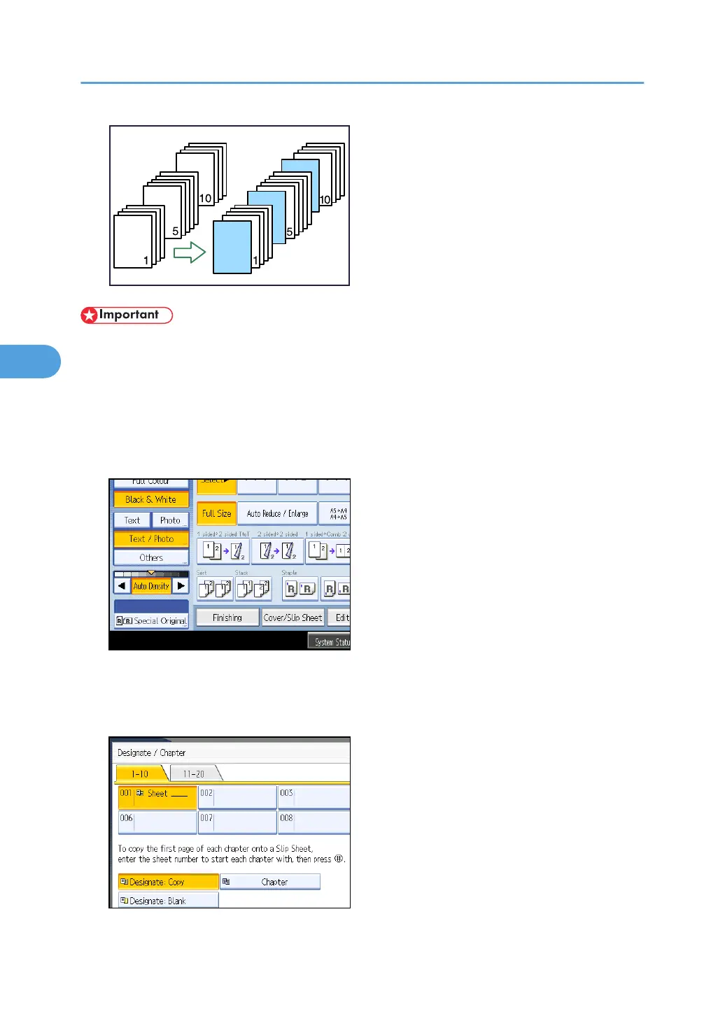 • Before using this function, select the tray for slip sheets under Slip Sheet in User Tools. For details, see