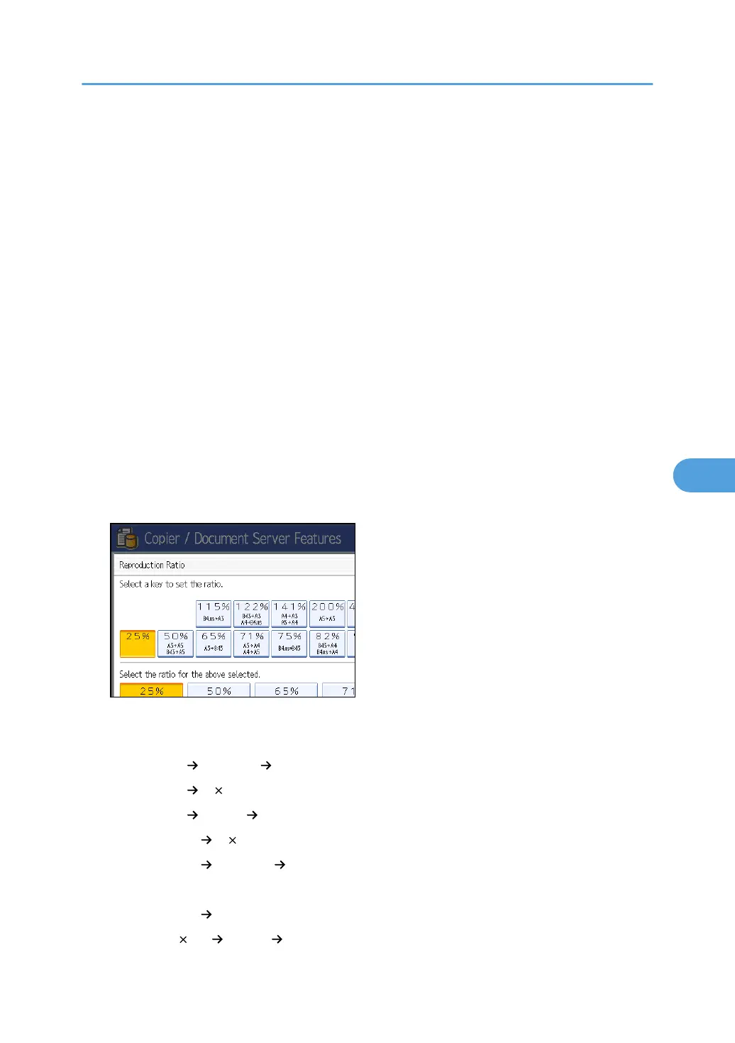 This section describes the user tools in the Reproduction Ratio menu under Copier / Document Server