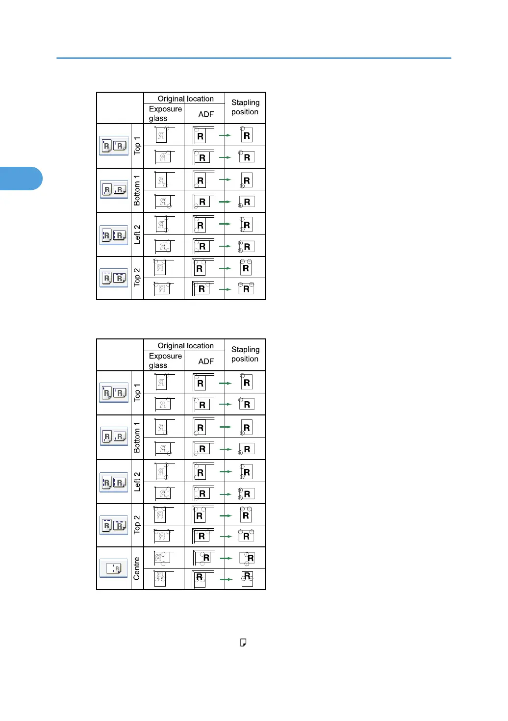The above table shows staple positioning. The orientation of the paper does not indicate