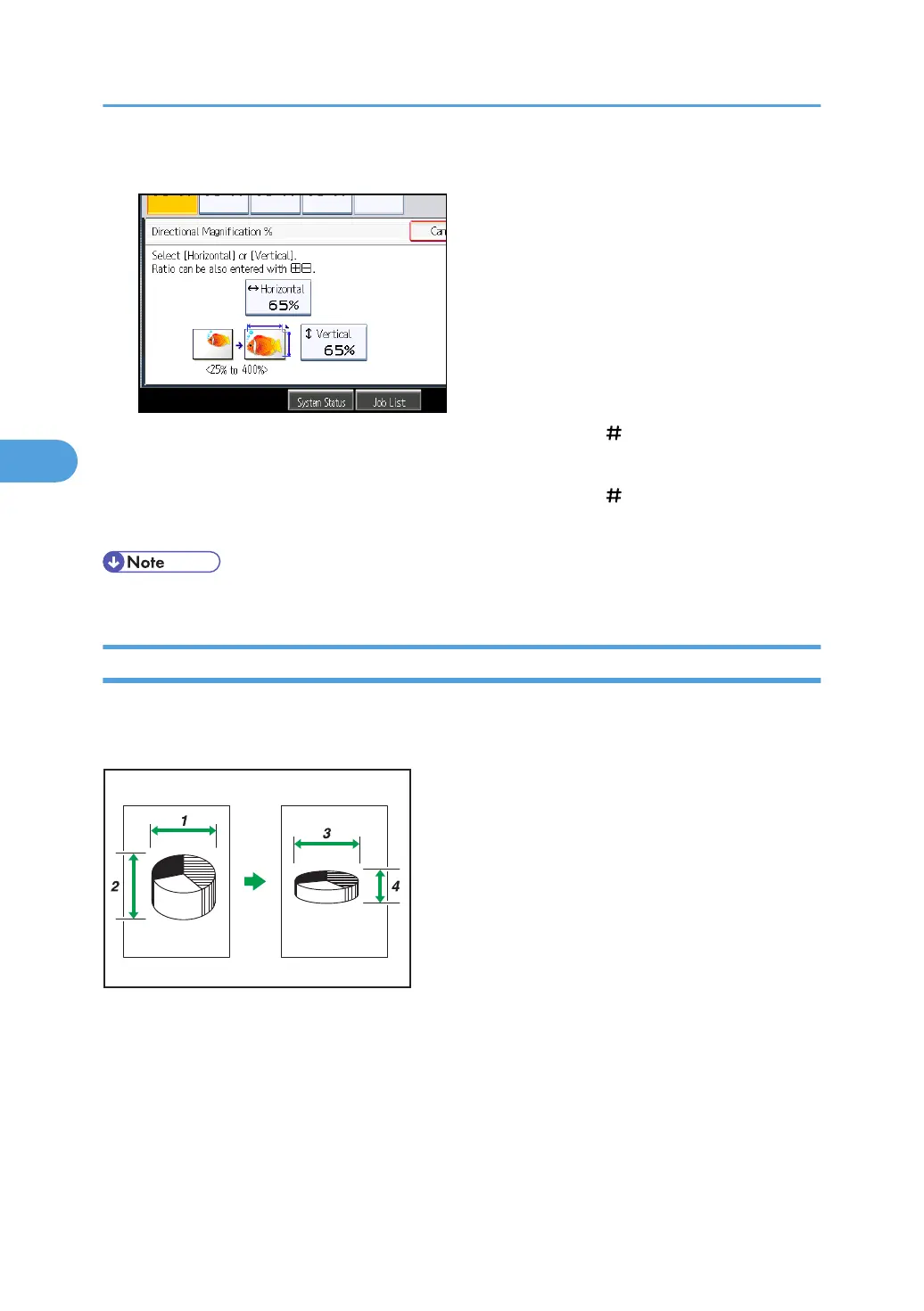 Copies can be reduced or enlarged at different reproduction ratios horizontally and vertically.