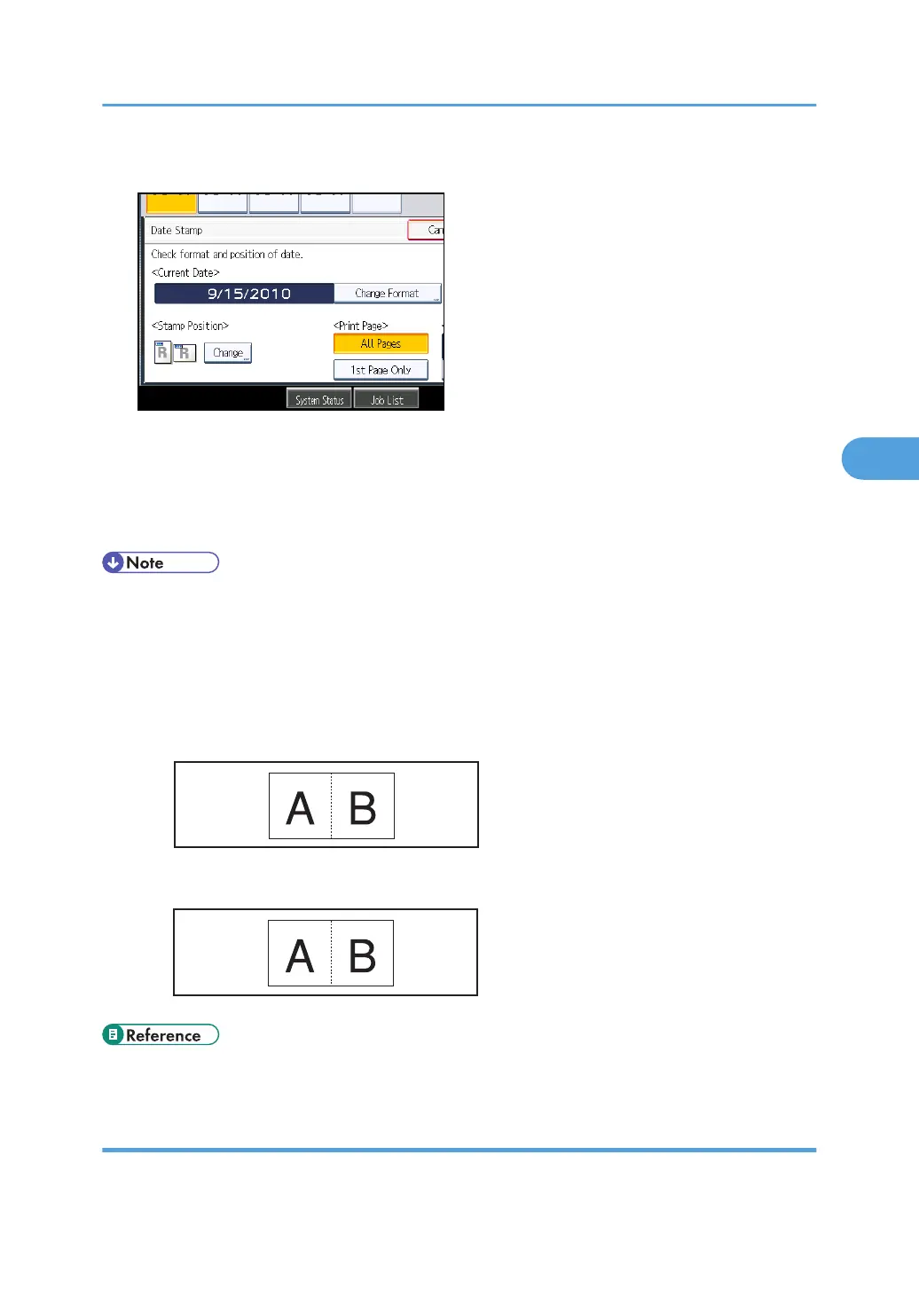 • You can change the settings for Date Stamp under Stamp in User Tools. For details about Stamp, see