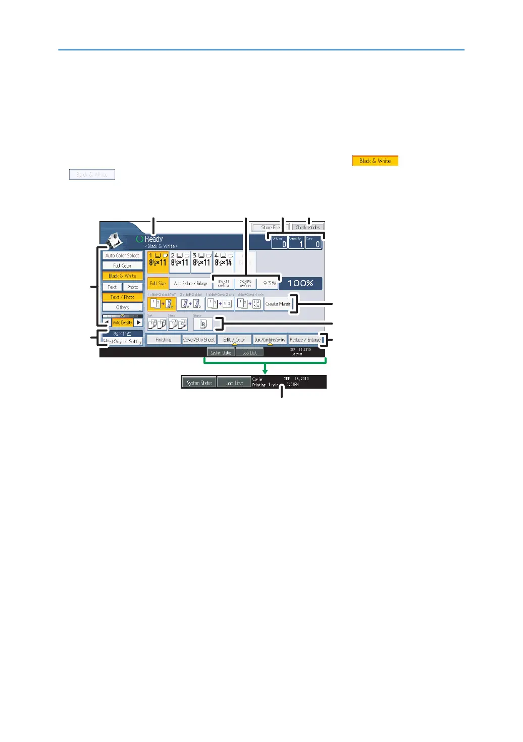 10. Use this area to specify the original type, color mode, image density level, and other settings.