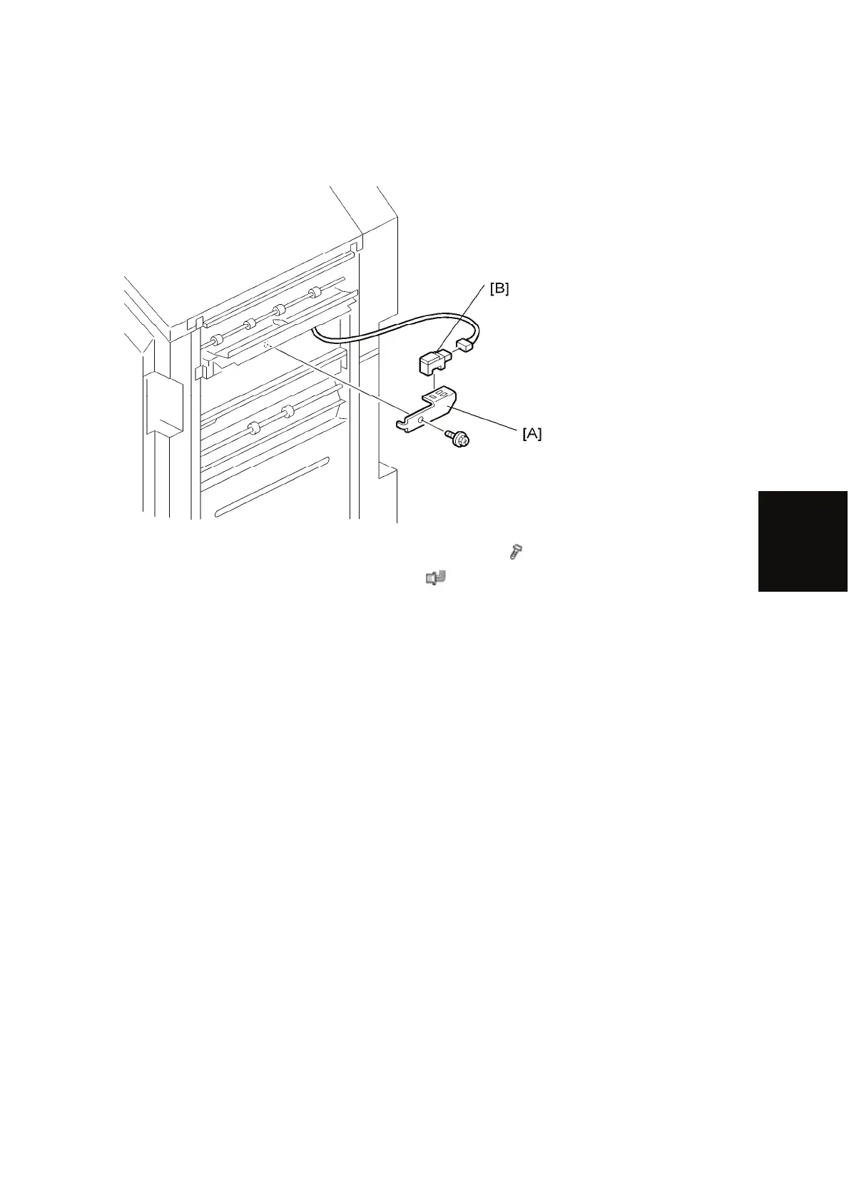 2. Remove the finisher entrance sensor [B] (