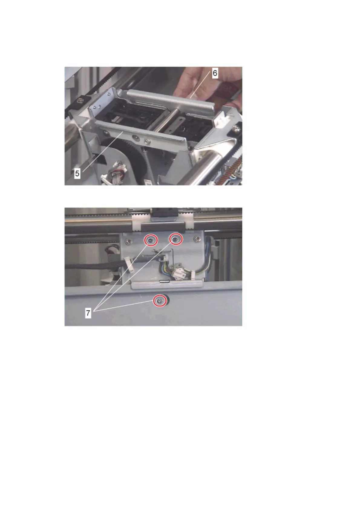 5. Tighten the screws [7] for the stapler folder unit.