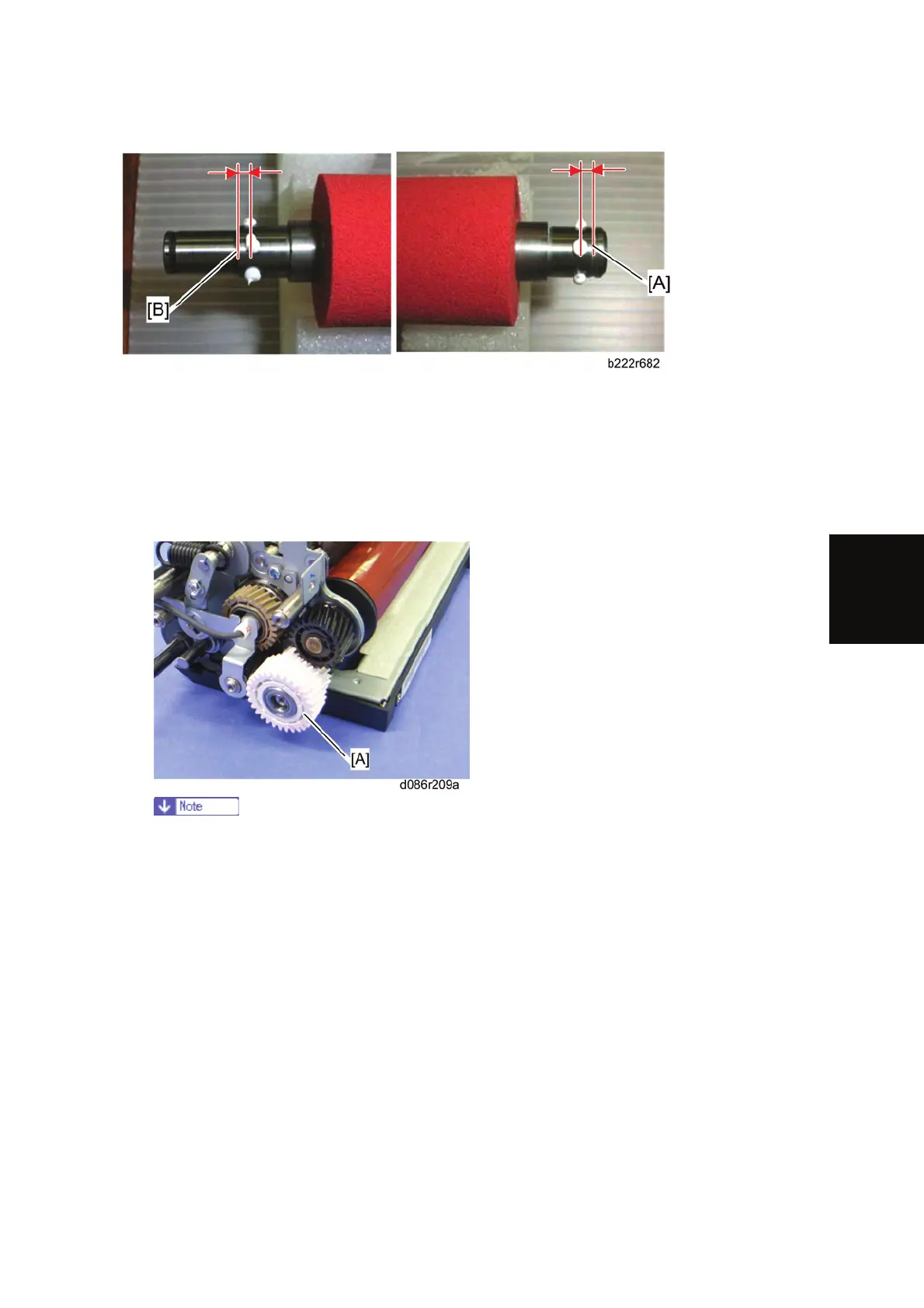 diameter, and approximately 0.1 g in weight) to the front shaft of the heating roller at 2 - 3