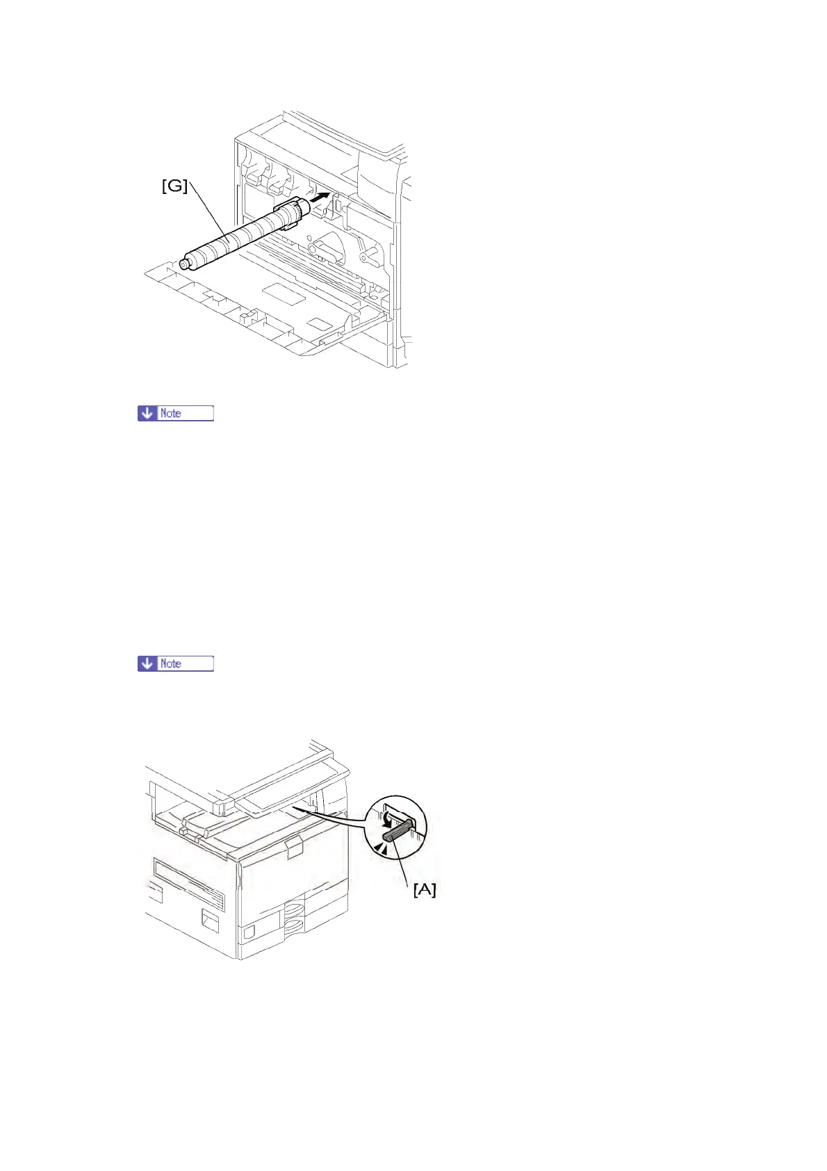 2. Pull out the feeler [A] for the output tray full detection mechanism.