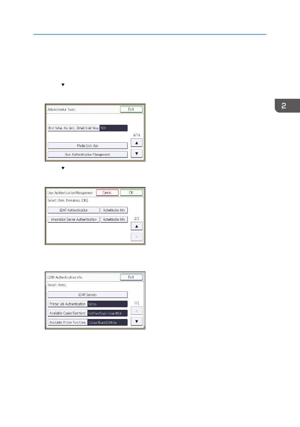 7. Select [LDAP Authentication], and then press [Authentication Info] next to it.
