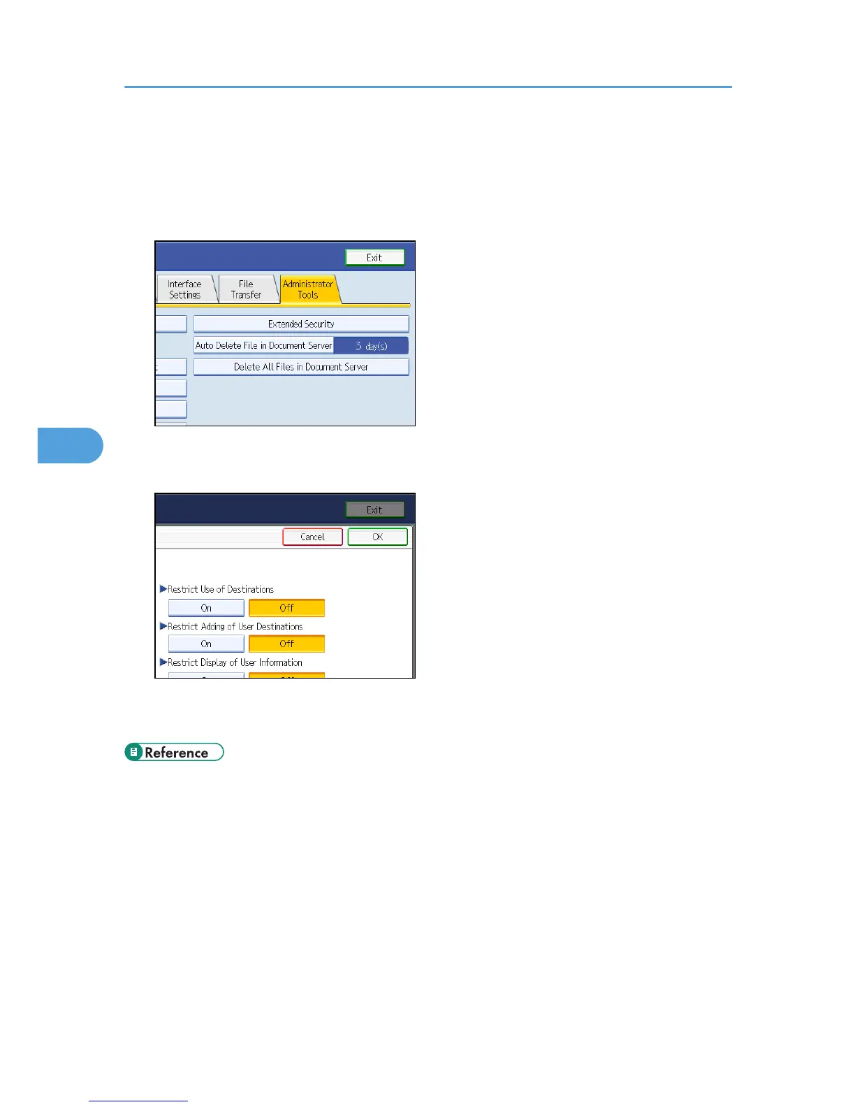 If "Restrict Use of Destinations" is set to [On], "Restrict Adding of User Destinations" does not appear.