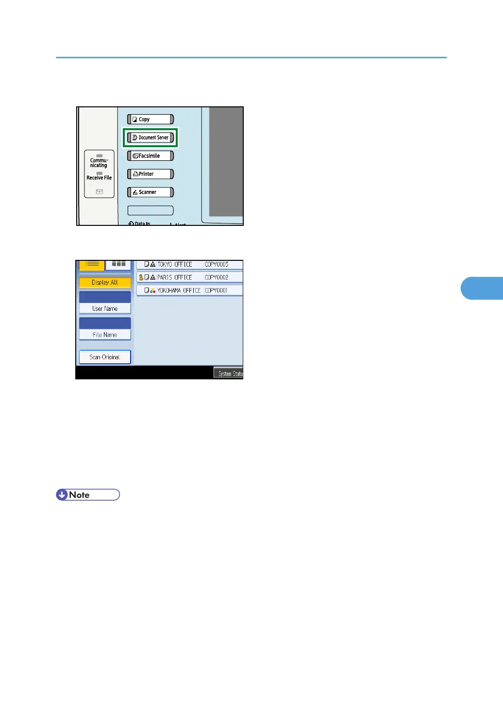 • After scanning, a list of stored documents will be displayed. If the list does not appear, press [Finish