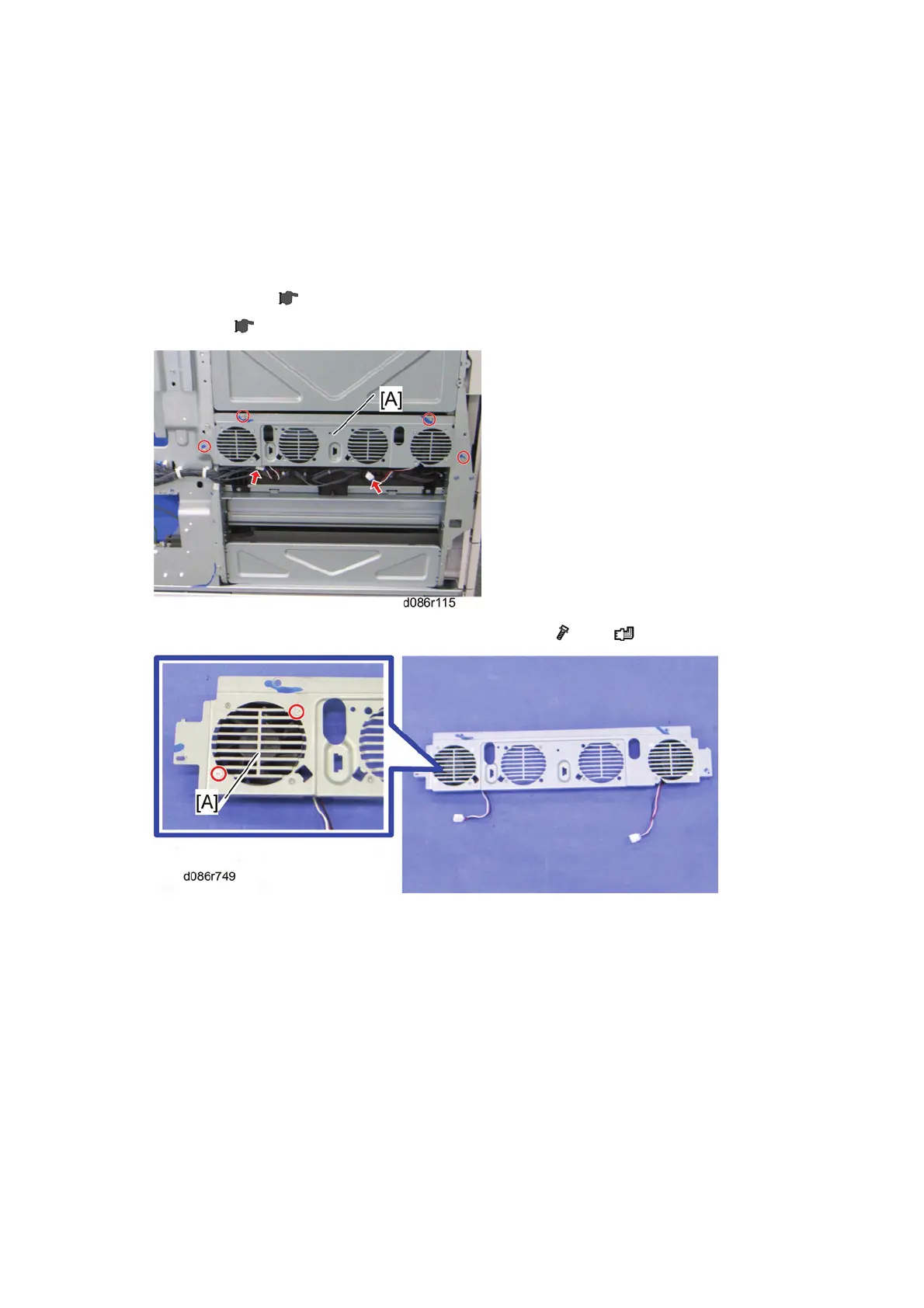 3. Airflow fan bracket [A] for the laser housing optics unit (