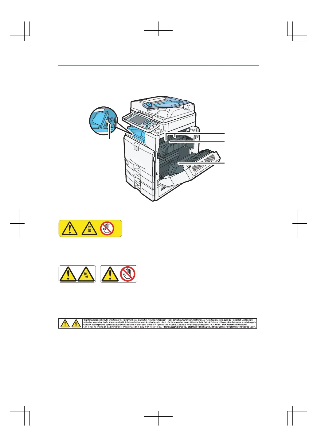 Do not touch the parts a label indicates. The inside of the machine could be very hot. Caution should be
