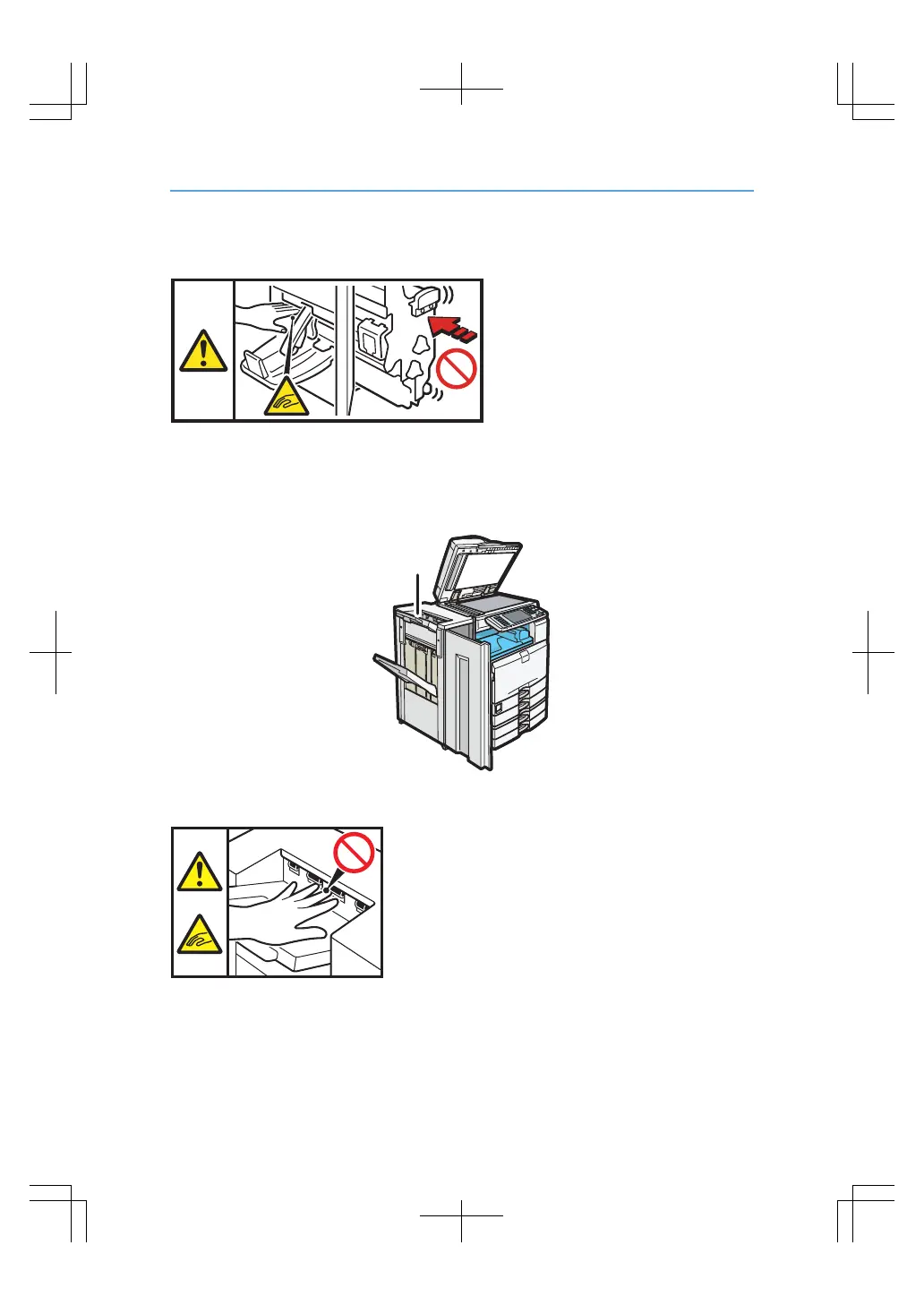 During operation, rollers for transporting the paper revolve. Take care not to touch rollers during operation.