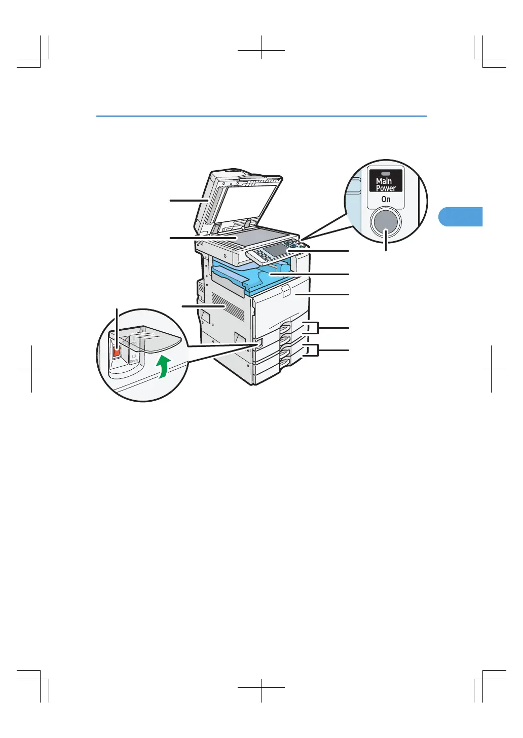 If the machine does not operate after turning on the operation switch, check if the main power switch is turned