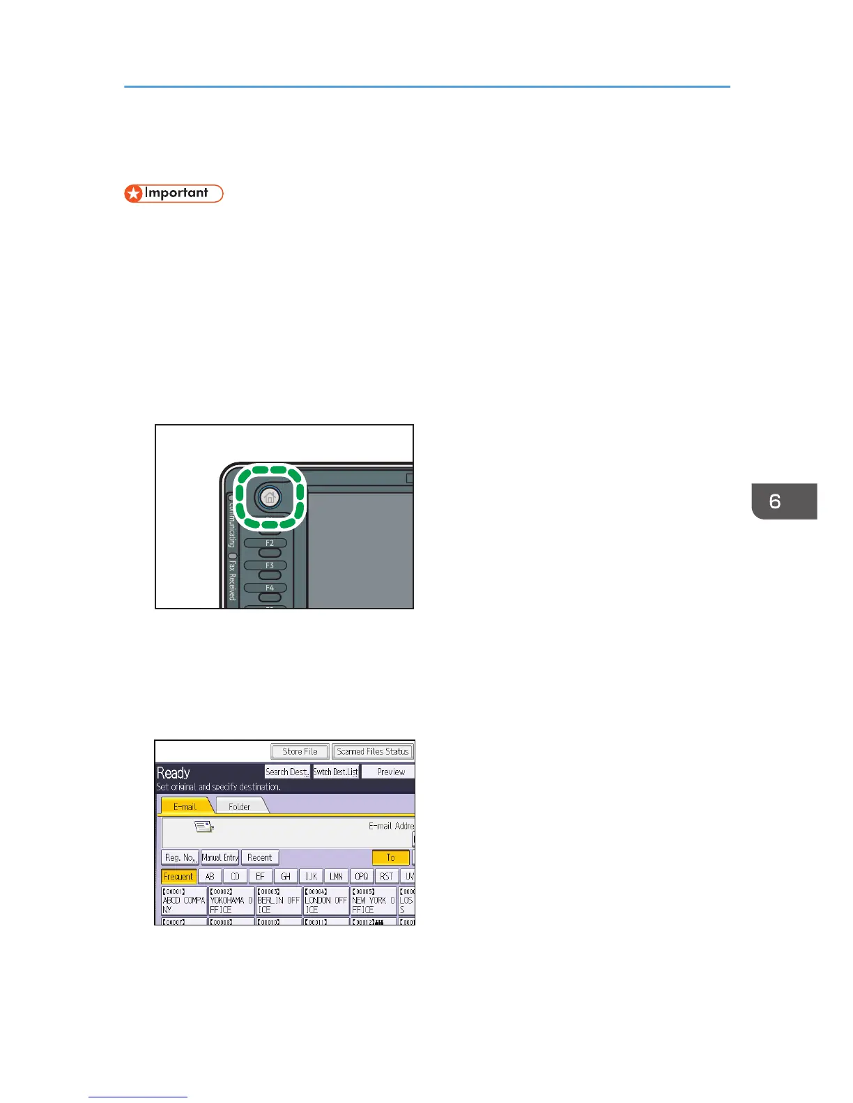 1. Press the [Home] key on the top left of the control panel, and press the [Scanner] icon on
