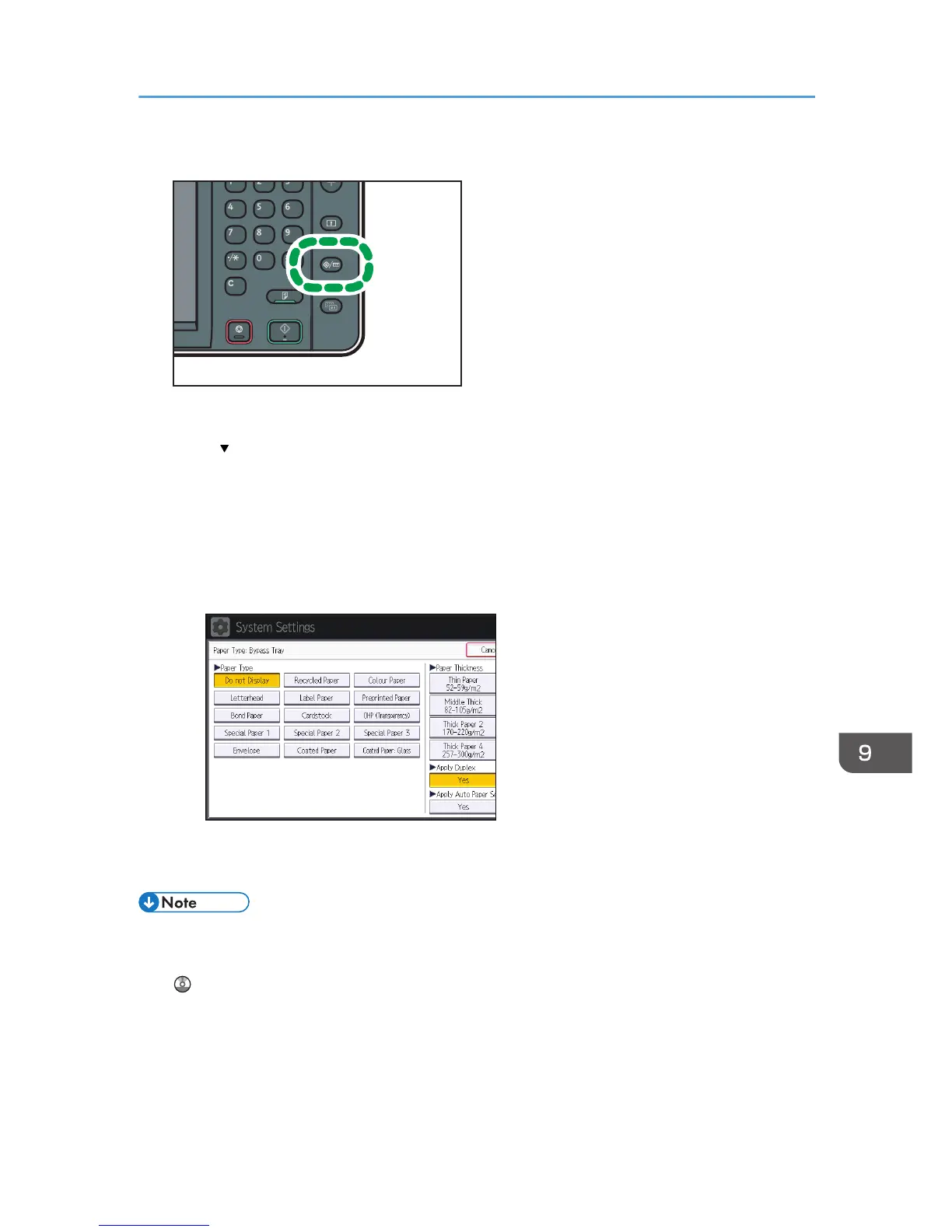 • To load thin or thick paper, press [Do not Display] on the [Paper Type] area, and then select