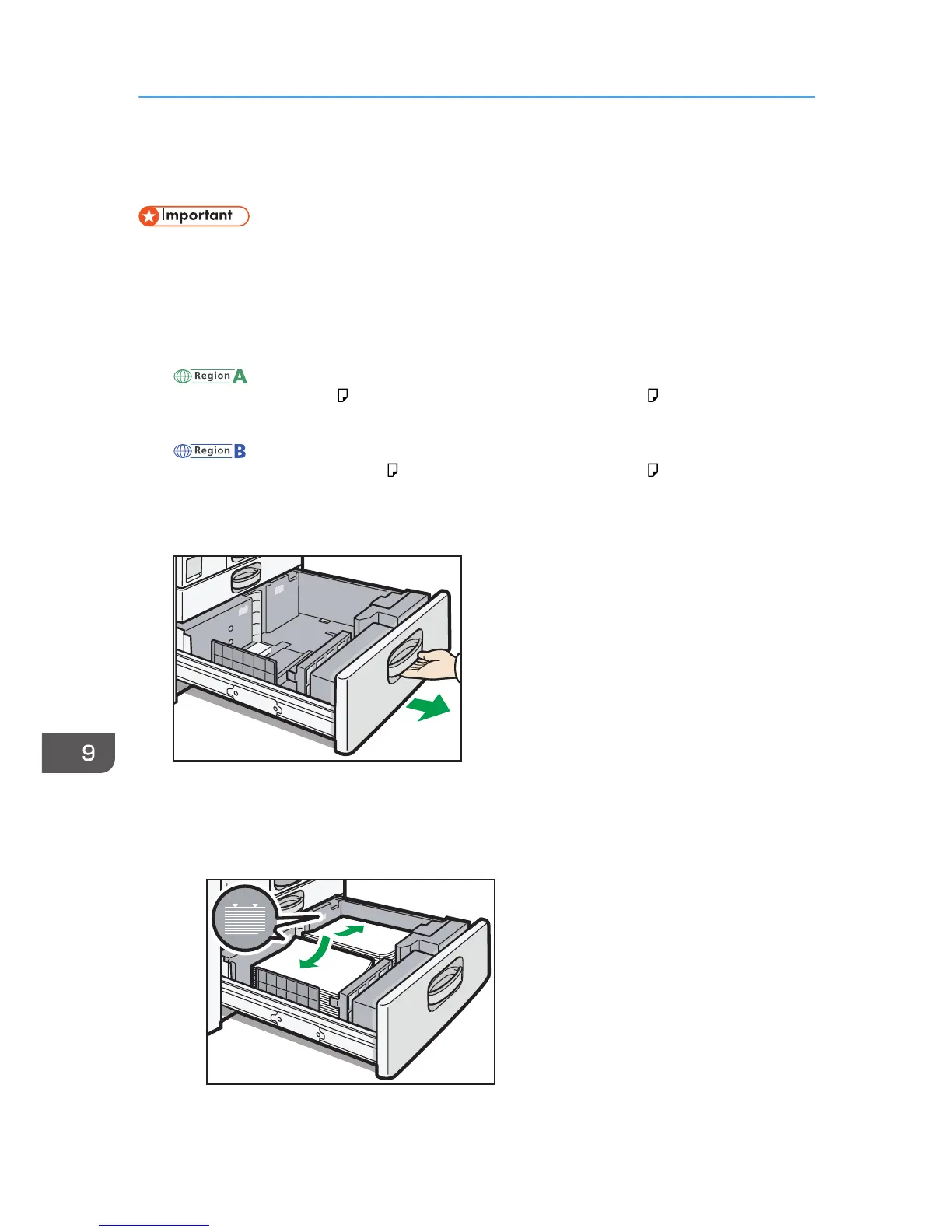 • For the right stack, align the right edge of the paper with the right edge of the tray. For the left