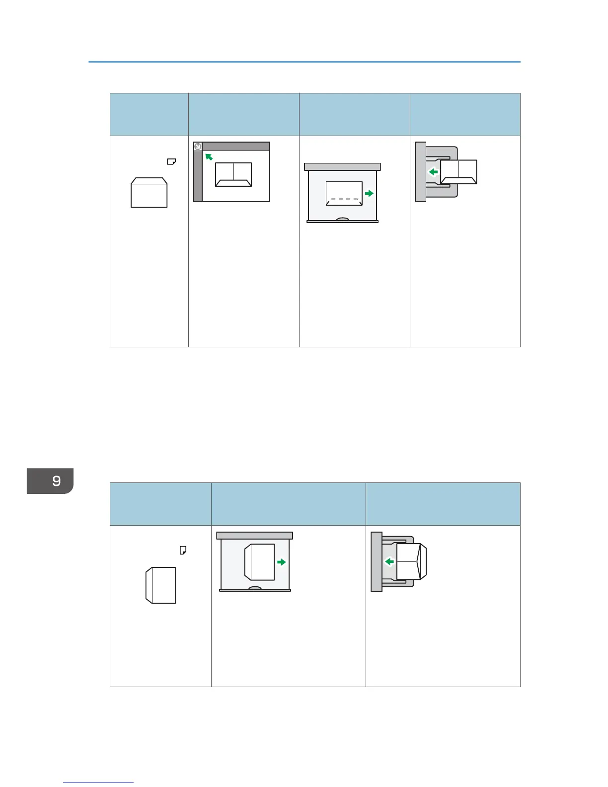 When loading envelopes, specify the envelope size and thickness. For details, see p.77 "Copying