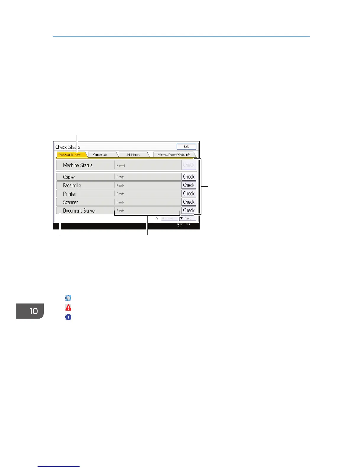 Status] screen. Check the status of each function in the [Check Status] screen.
