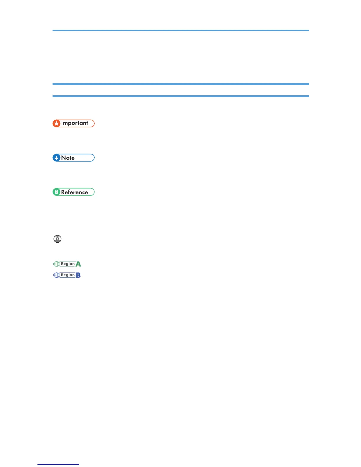 Indicates points to pay attention to when using the machine, and explanations of likely causes of paper