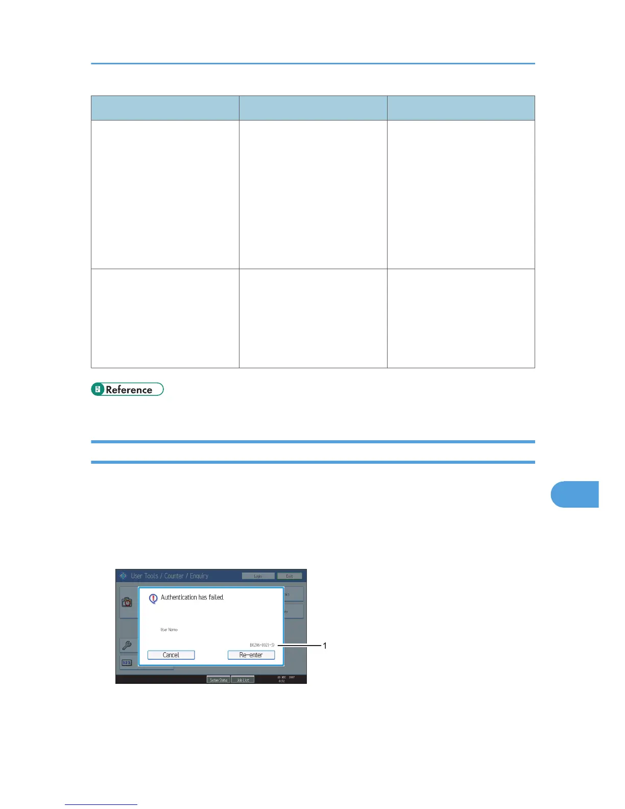 When authentication fails, the message "Authentication has failed." appears with an error code. The