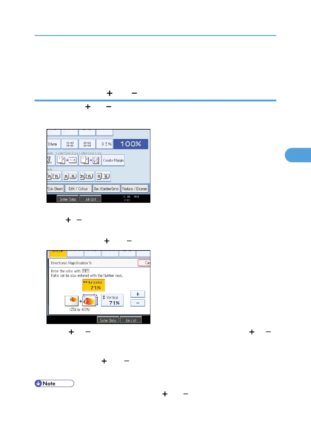 Pressing [ ] or [ ] changes the ratio in increments of 1%. Pressing and holding down [ ] or [ ]