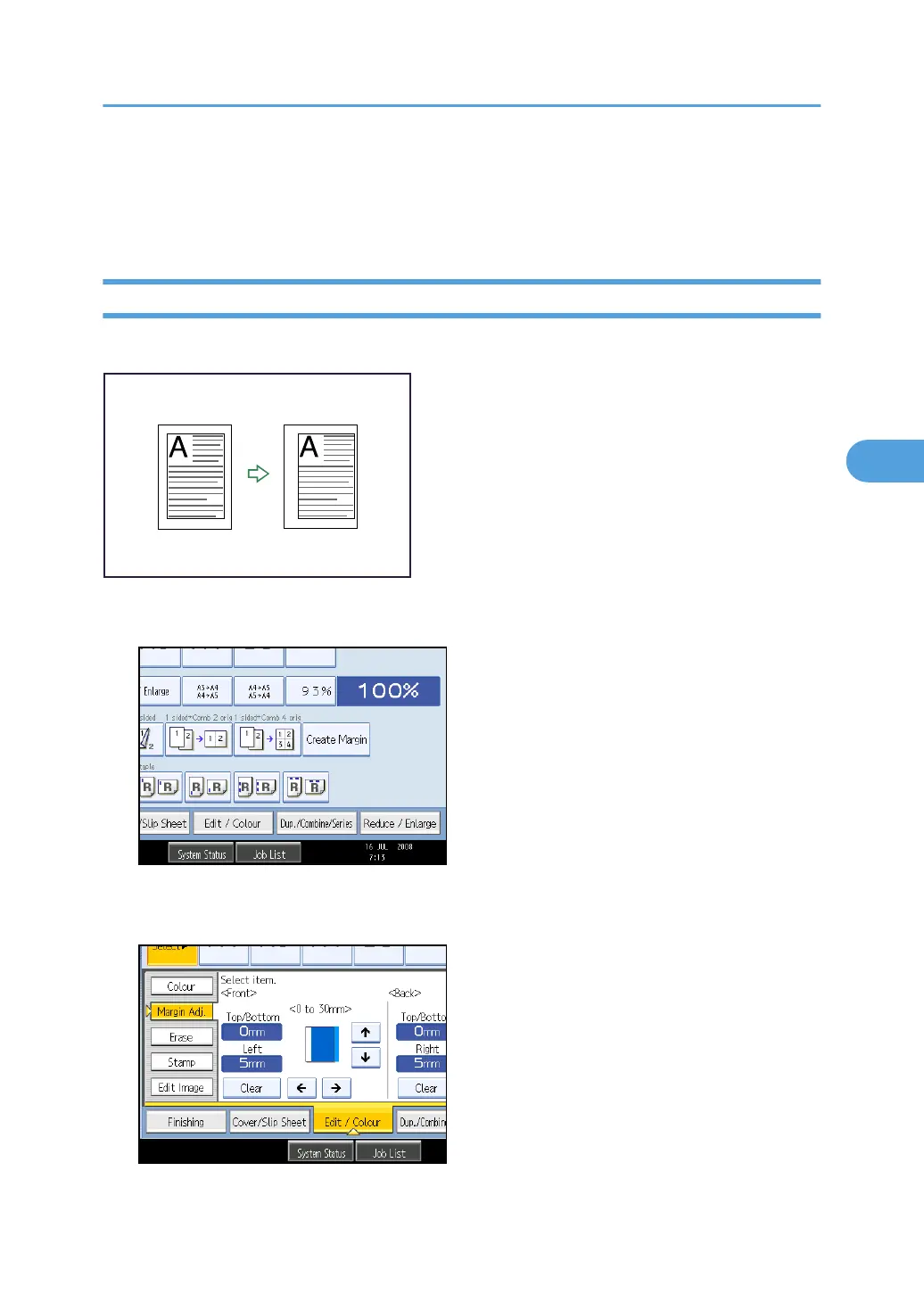 2. Make sure that [Margin Adj.] is selected. If [Margin Adj.] is not selected, press [Margin Adj.].