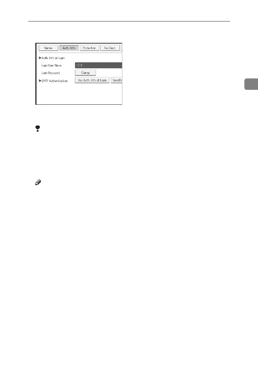 ❒ To use [Use Auth. Info at Login] for SMTP authentication, a login password