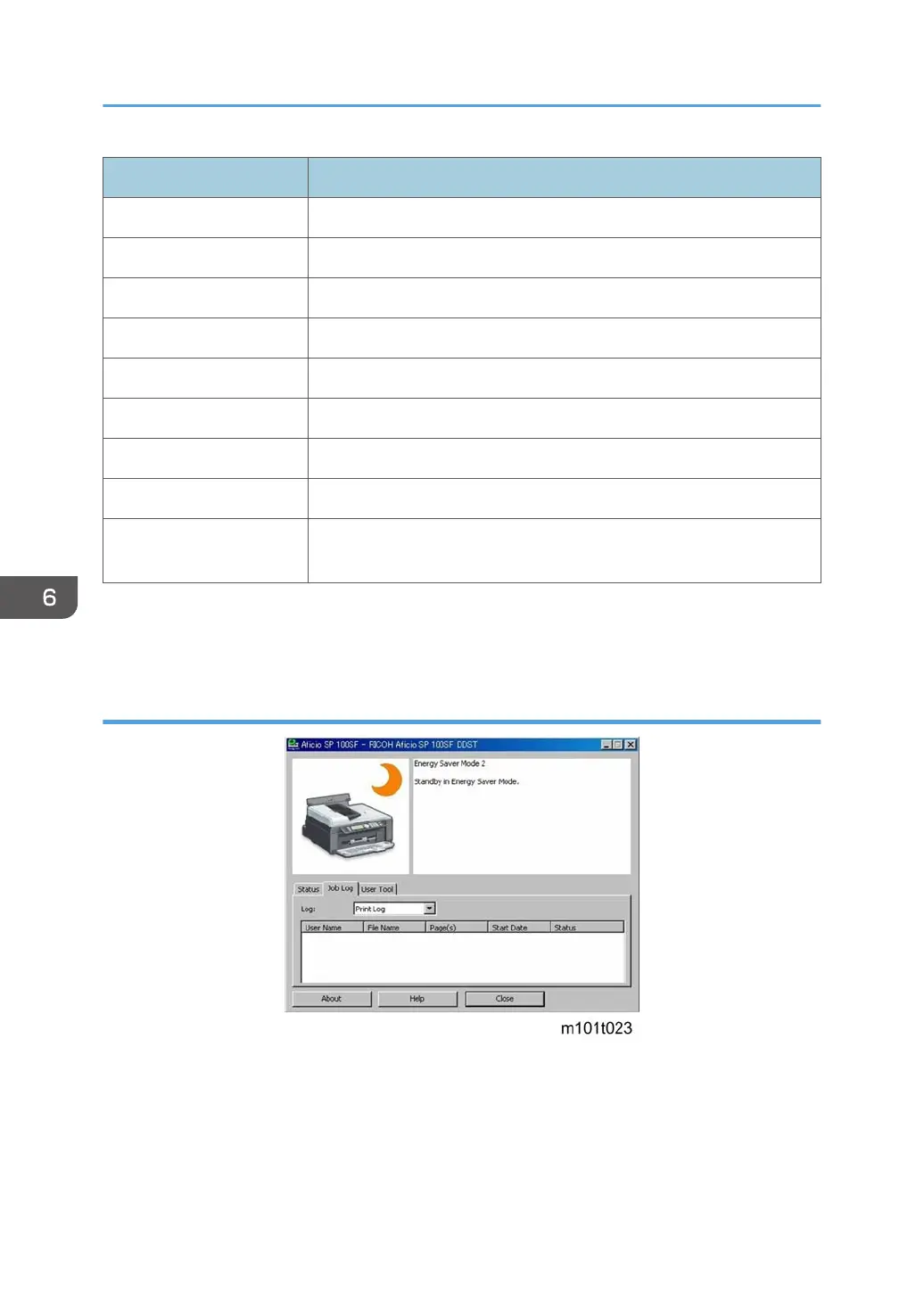 Log: Print Log. Operator can select either Print Log or Fax Log (M103 only).