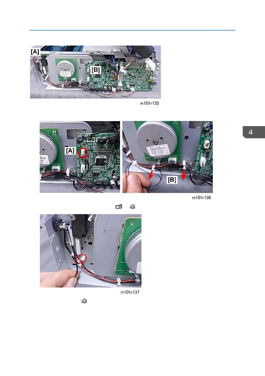 2. Disconnect the harness at [A] and [B] ( x1, x2).