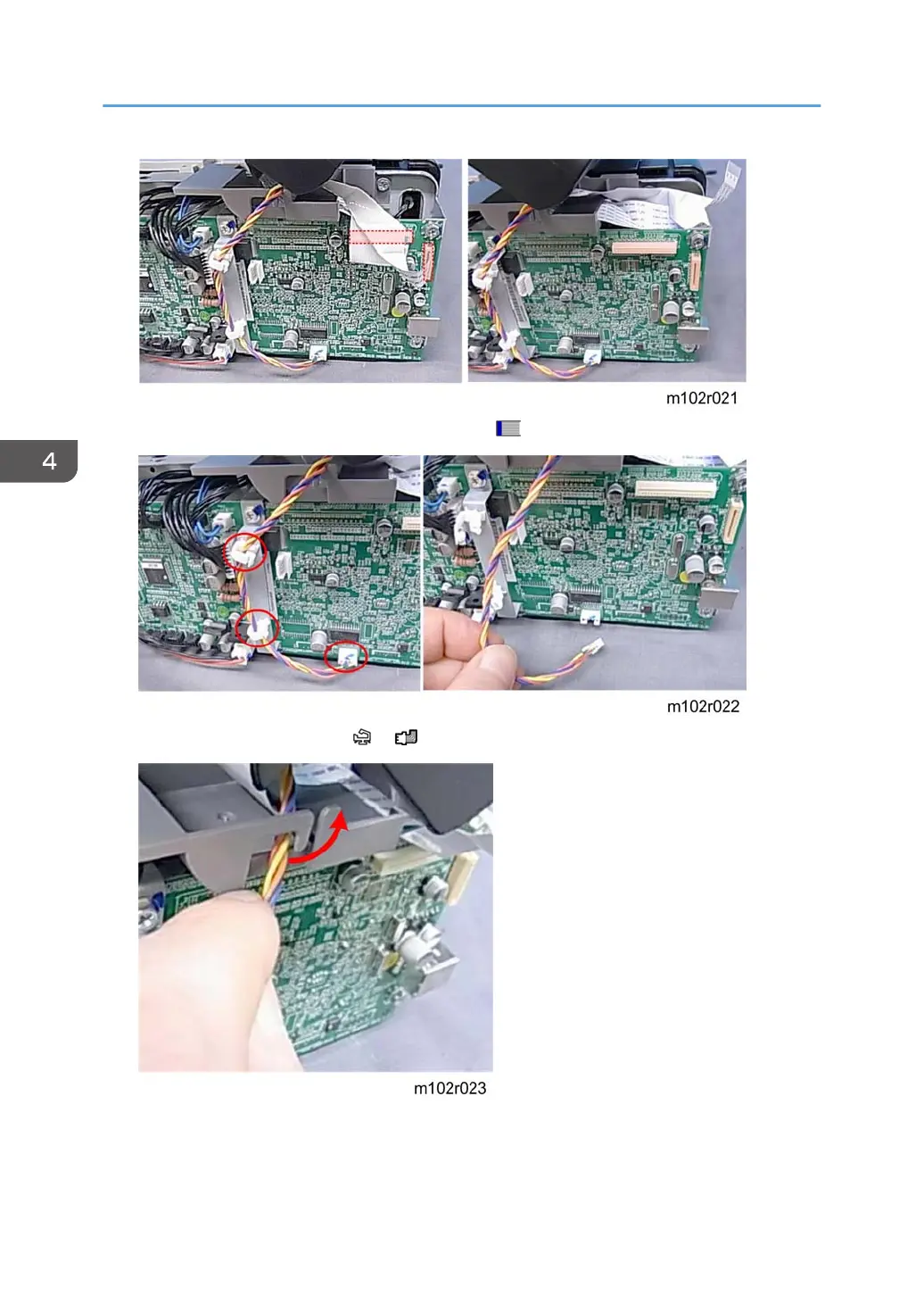 2. Disconnect the flat cables at the upper right corner ( x2).