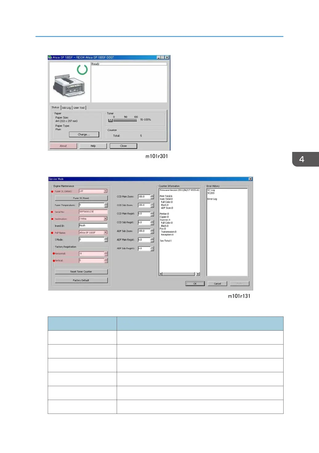 2. Enter the service mode to display the Service Mode screen.