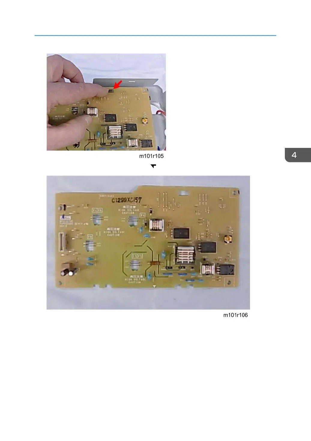 9. Press the tab release and remove the board ( x1).