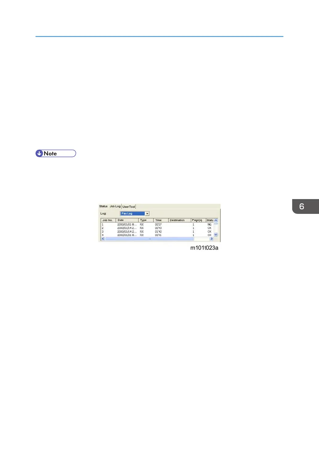 • The Fax Log is limited to the last 100 fax jobs. Once this limit is exceeded, the log for the oldest job