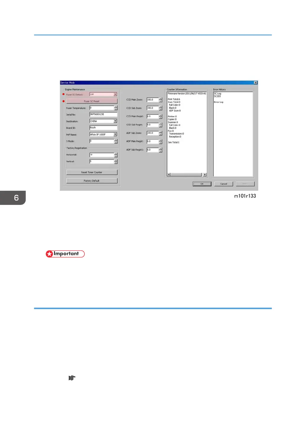 must execute [Fuser SC Reset] in order to recover full operation of the machine. Otherwise the